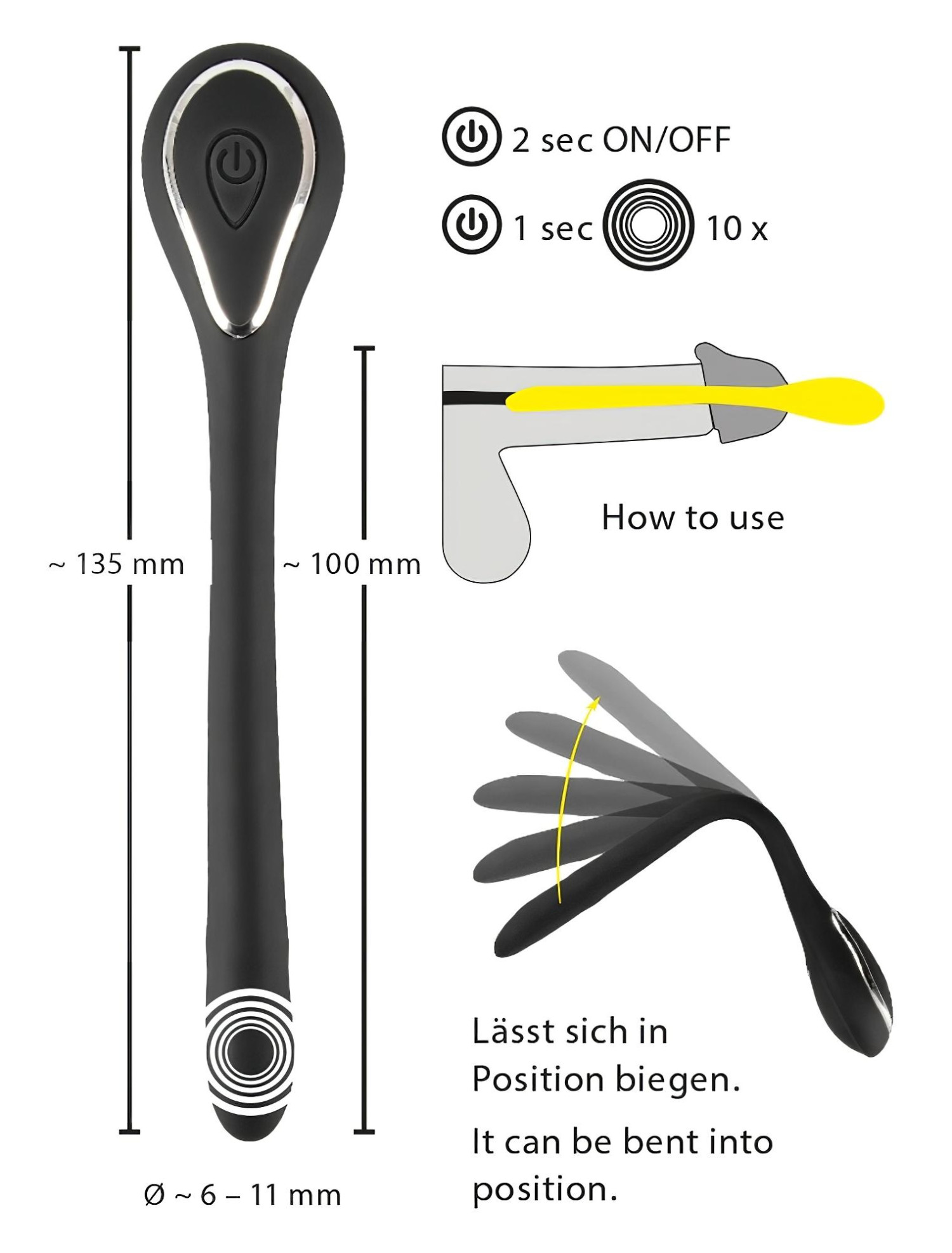 **Vibrerende, oppladbar penisplugg – 1,1 cm, svart**