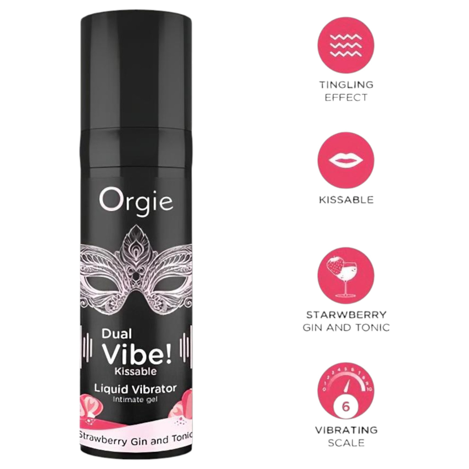 • 1 stk Dual Vibe! Kissable Liquid Vibrator gel med Strawberry Gin & Tonic smak (15 ml)