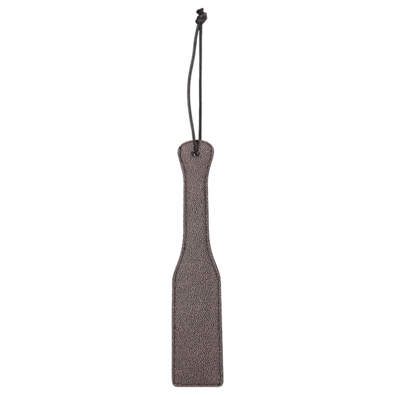 Perfekt for rollespill, denne høykvalitets paddle er laget av imitert skinn med en silkeaktig glatt overflate av titan-grått neopren på den ene siden og en jevn skinnoverflate på den andre, med vakkert sydd kanter.