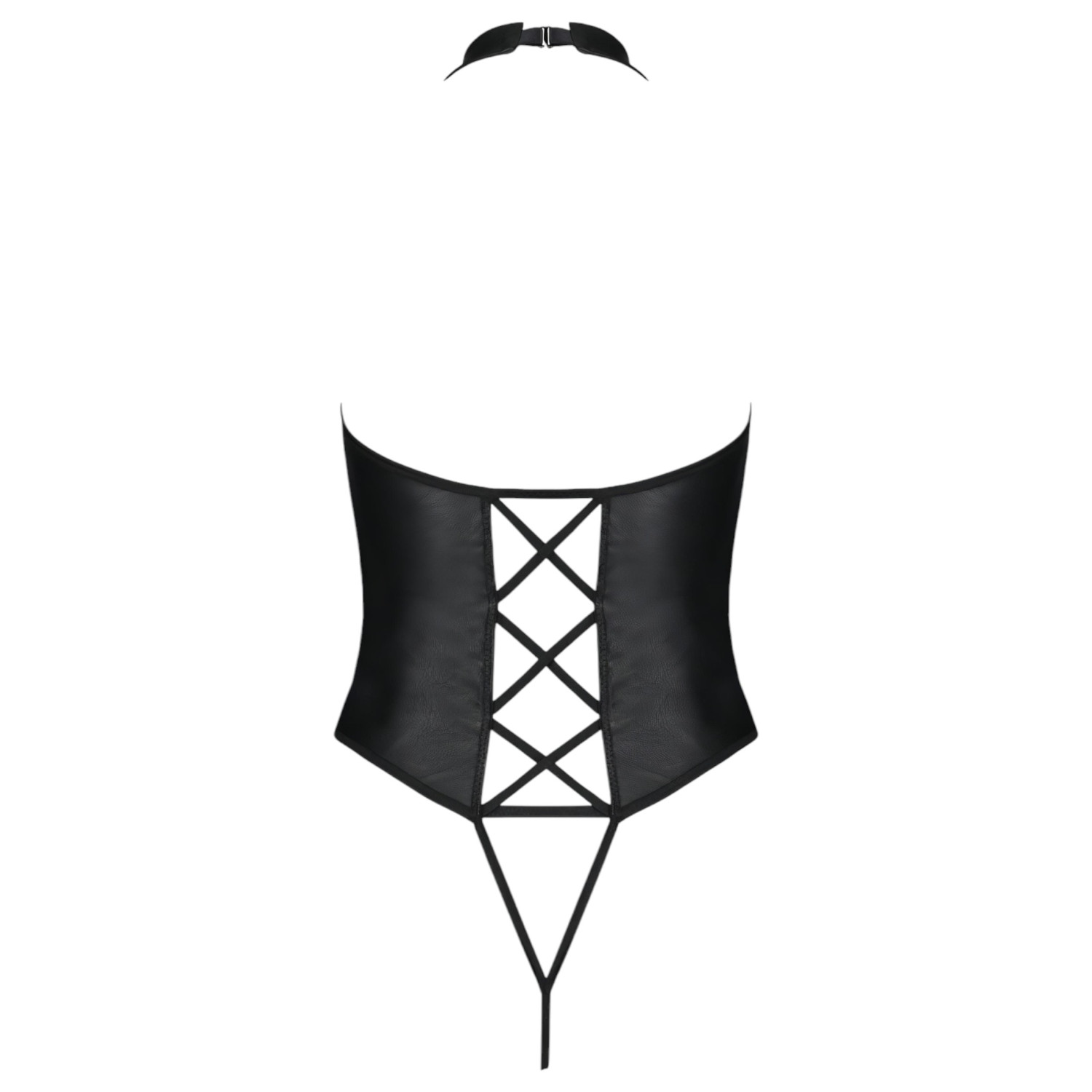 En sexy body i skinn-look som du kan bruke mens du holder på, fordi den er helt åpen bak og foran!