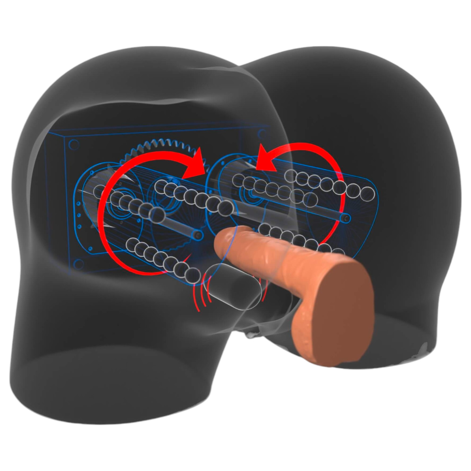 Masturbatoren fungerer med strømnett, noe som gjør at den kan brukes kontinuerlig. Pakken inneholder 3 forskjellige adaptere slik at den kan kobles til strømuttak i ulike land.