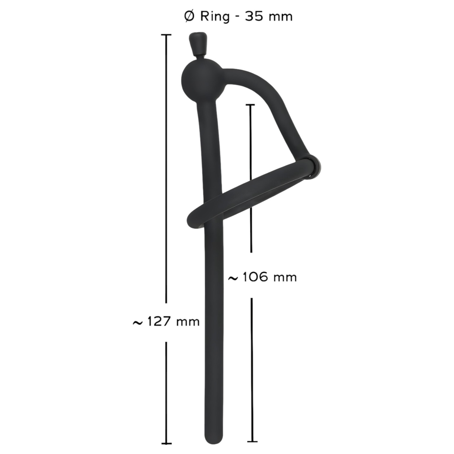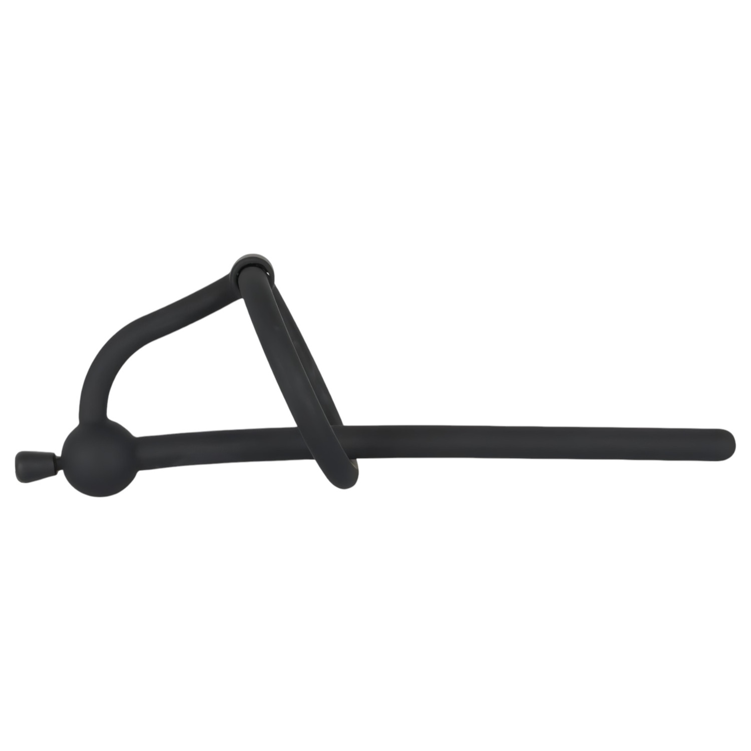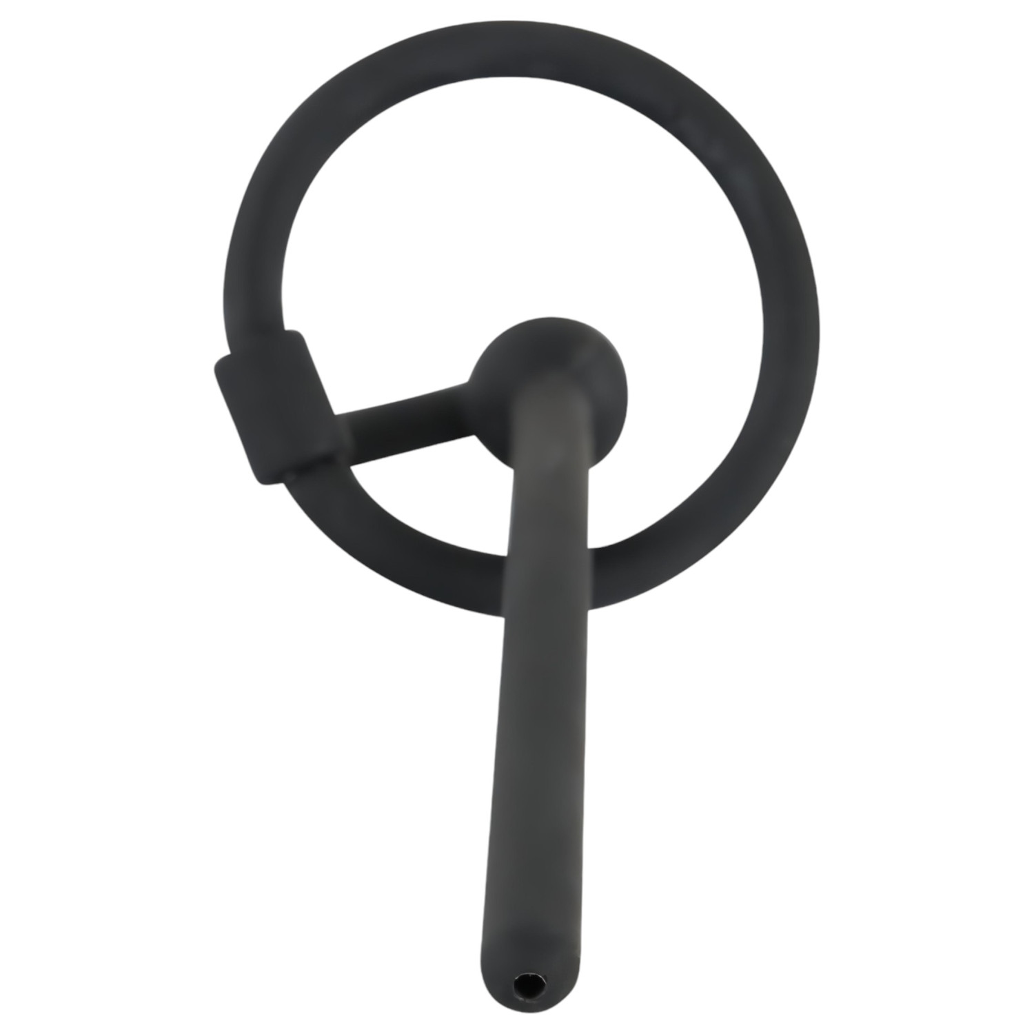 Penisplugg – silikon dilatator med glansring (0,6 mm) – svart