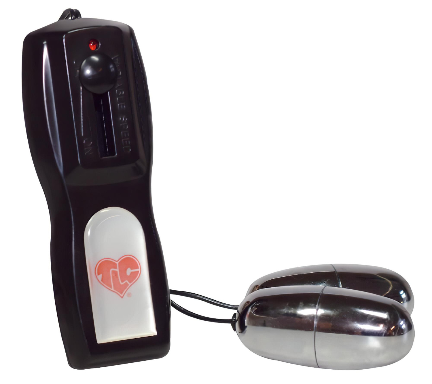 De vibrerende eggene kommer med en kablet fjernkontroll, som har en vribryter for å justere intensiteten.