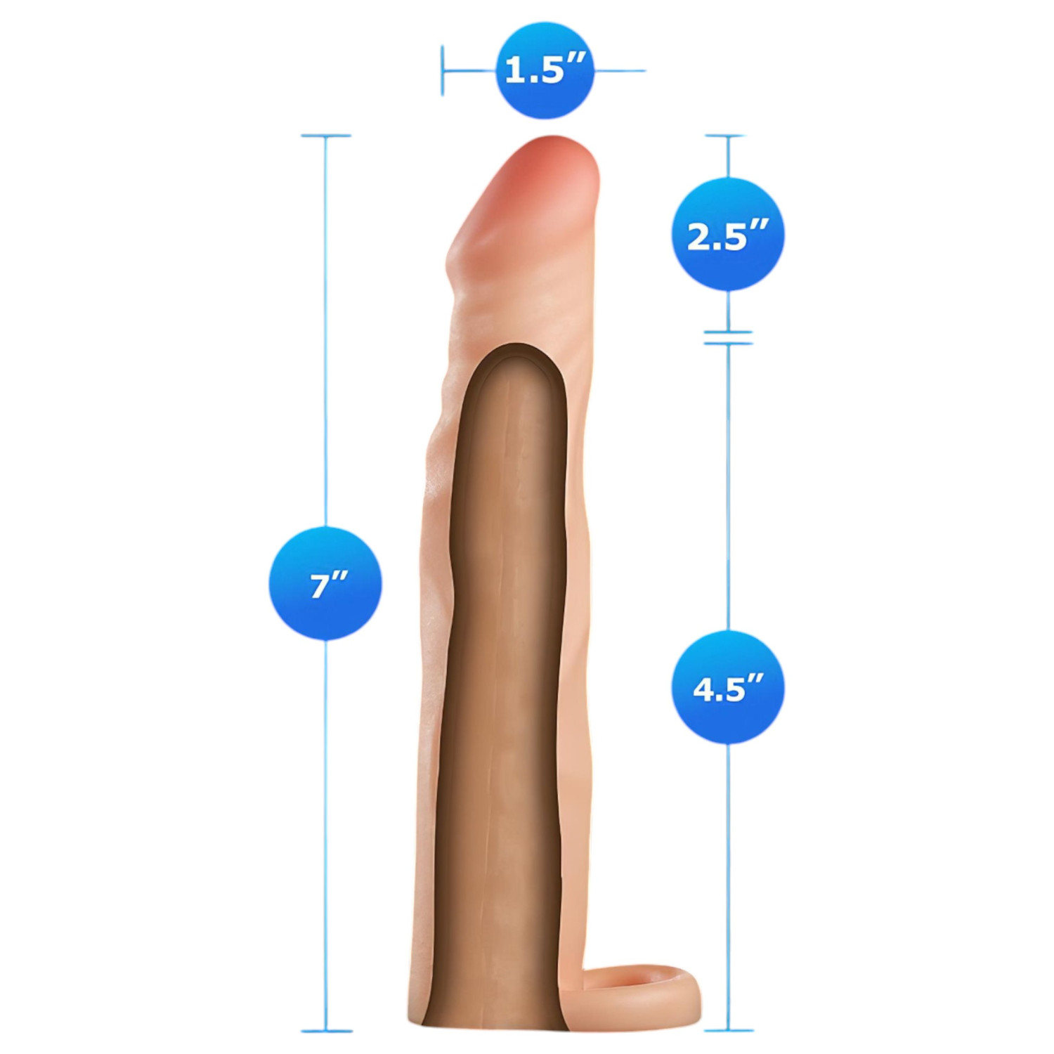 Med Blush sitt premium tilbehør får du både realistisk følelse og størrelse. Lengden øker med opptil 6,3 cm og omkretsen med 3,8 cm, noe som gir en intens og tilfredsstillende opplevelse for begge parter. Kombinasjonen av Sensa Feel® Dual Density silikon og Purio® flytende silikon gir en myk, hudlignende følelse, mens den elastiske løkkestroppen holder den sikkert på plass.