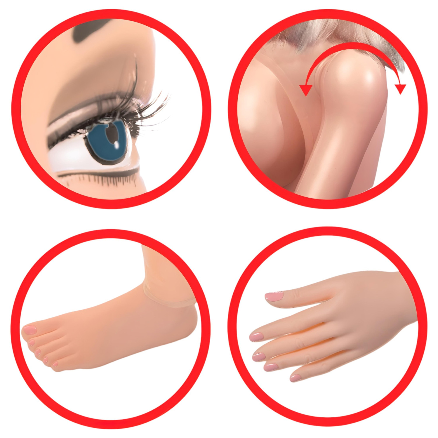 • Livsstørrelse, runde og fyldige bryster, bevegelige armer