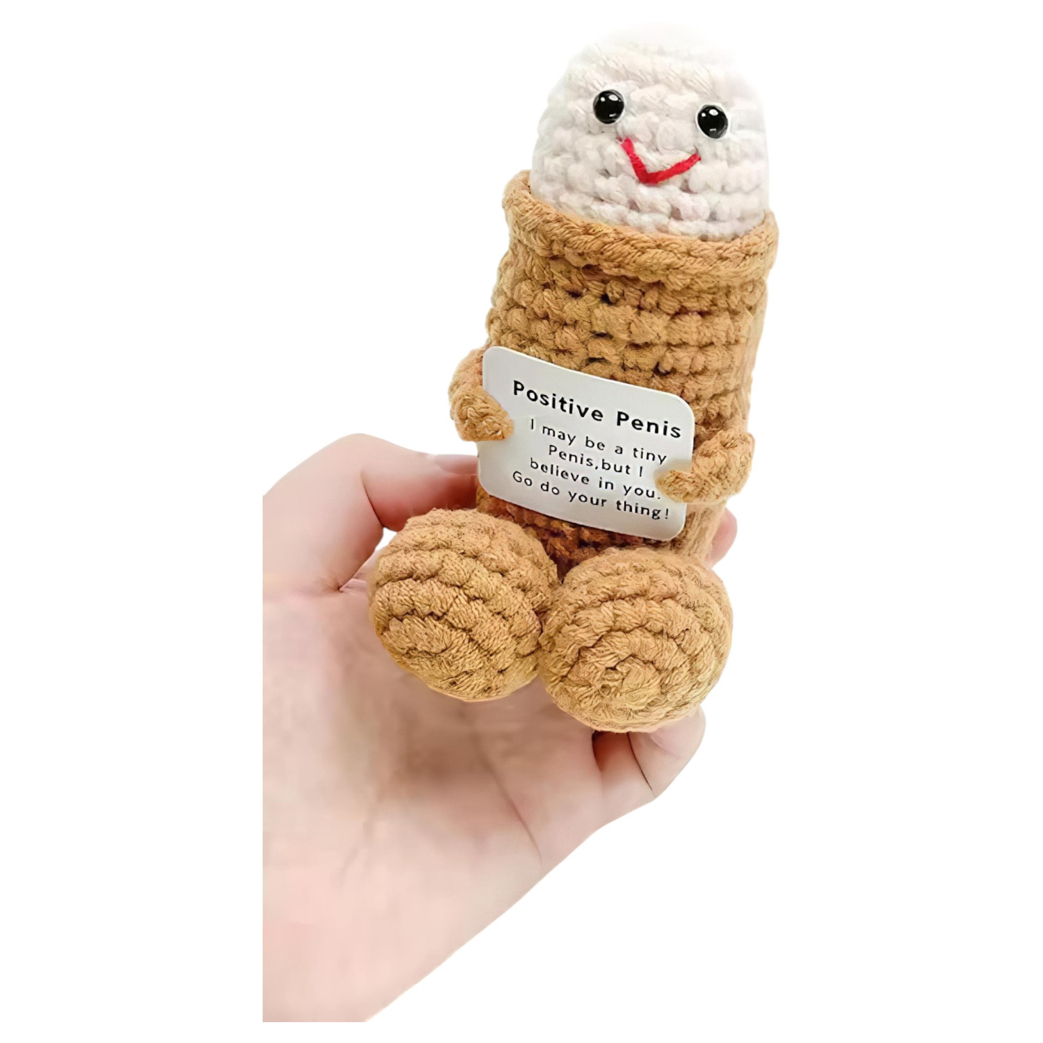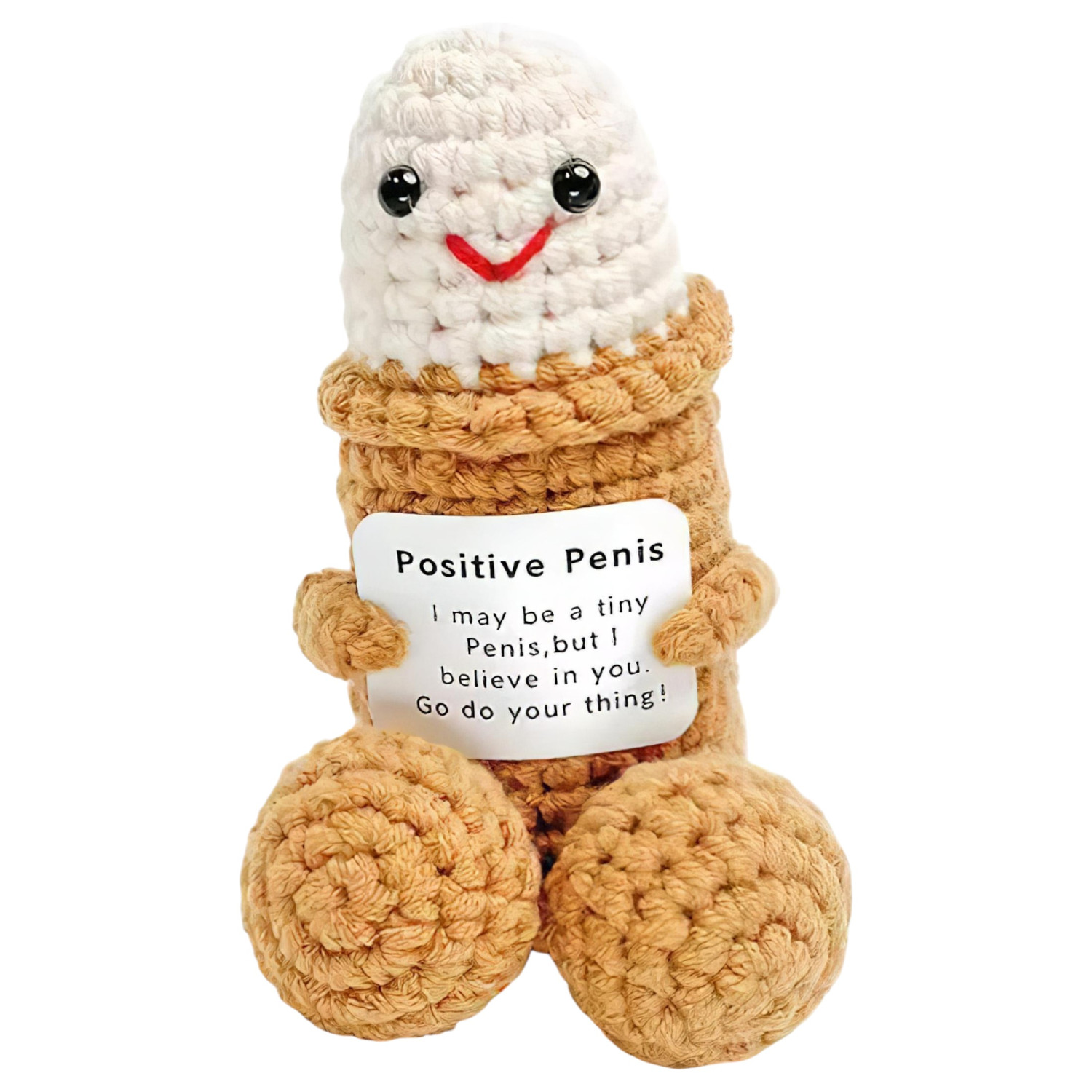 Den Positive penis - strikket (naturlig) er en morsom, sjarmerende og spesielt elskverdig heklet figur som garantert vil lyse opp stemningen og bringe glede i hverdagen.