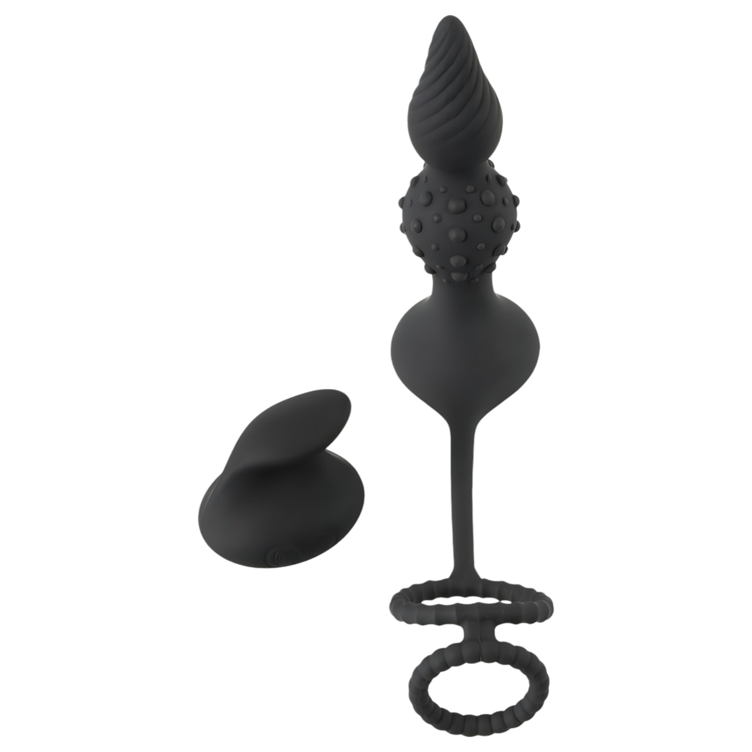 Rebel 2-i-1 - oppladbar, trådløs analvibrator med penisring (svart)