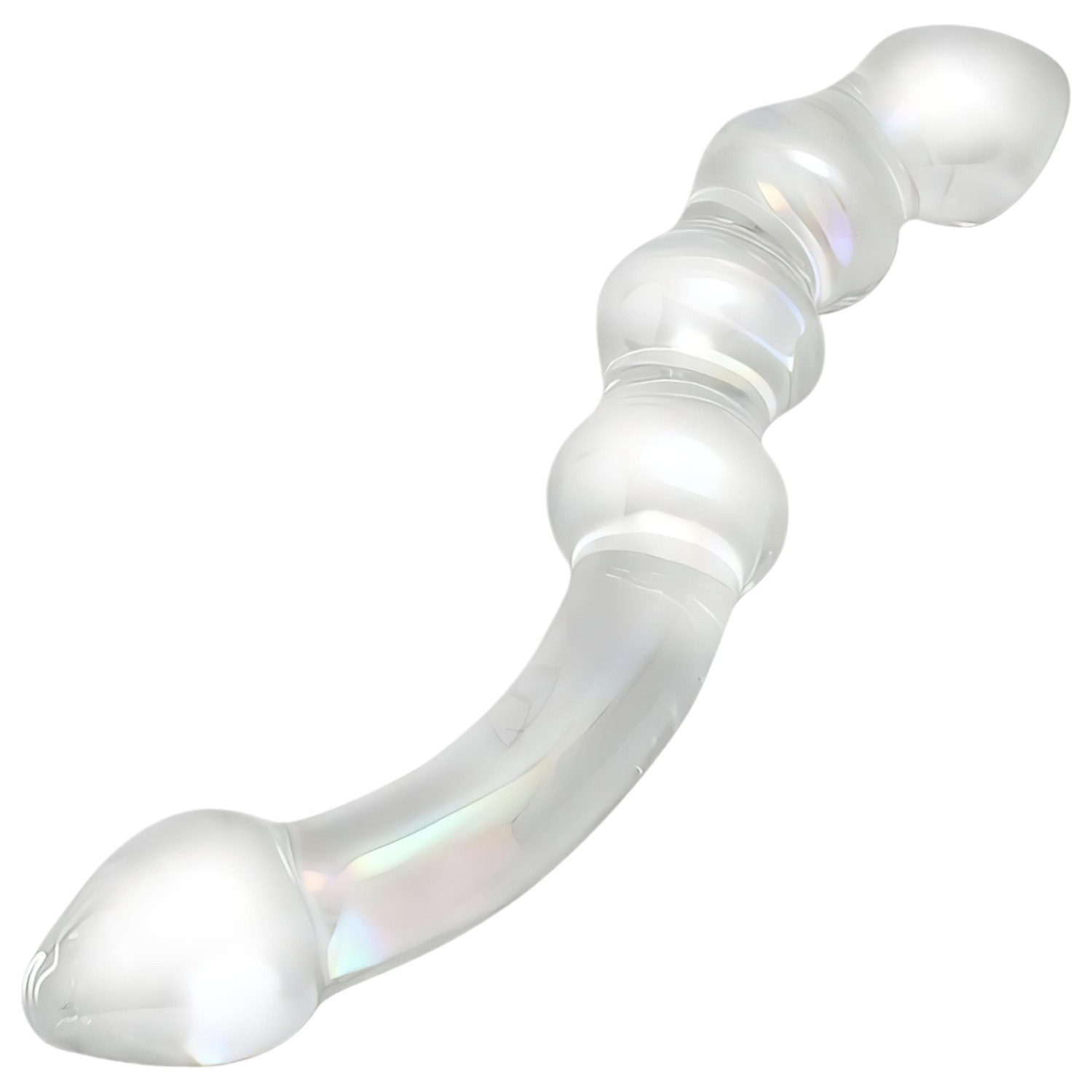 Rimba Dolly - bølgete, gjennomsiktig glassdildo for anal bruk