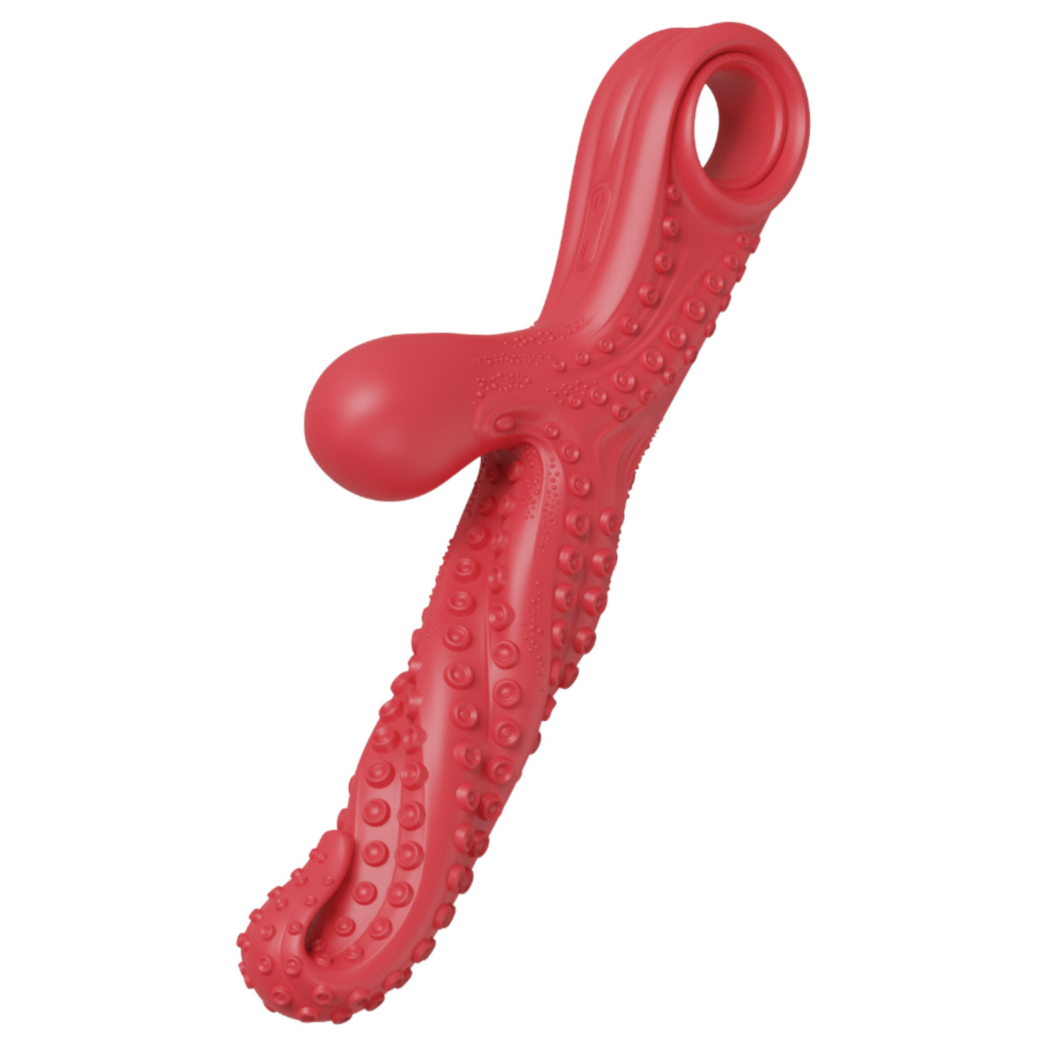 Den Klitorisbærende blekksprutvibratoren (rød) har en spesiell design som stimulerer både G-punktet og klitoris, noe som gir dobbel nytelse hver gang den brukes.