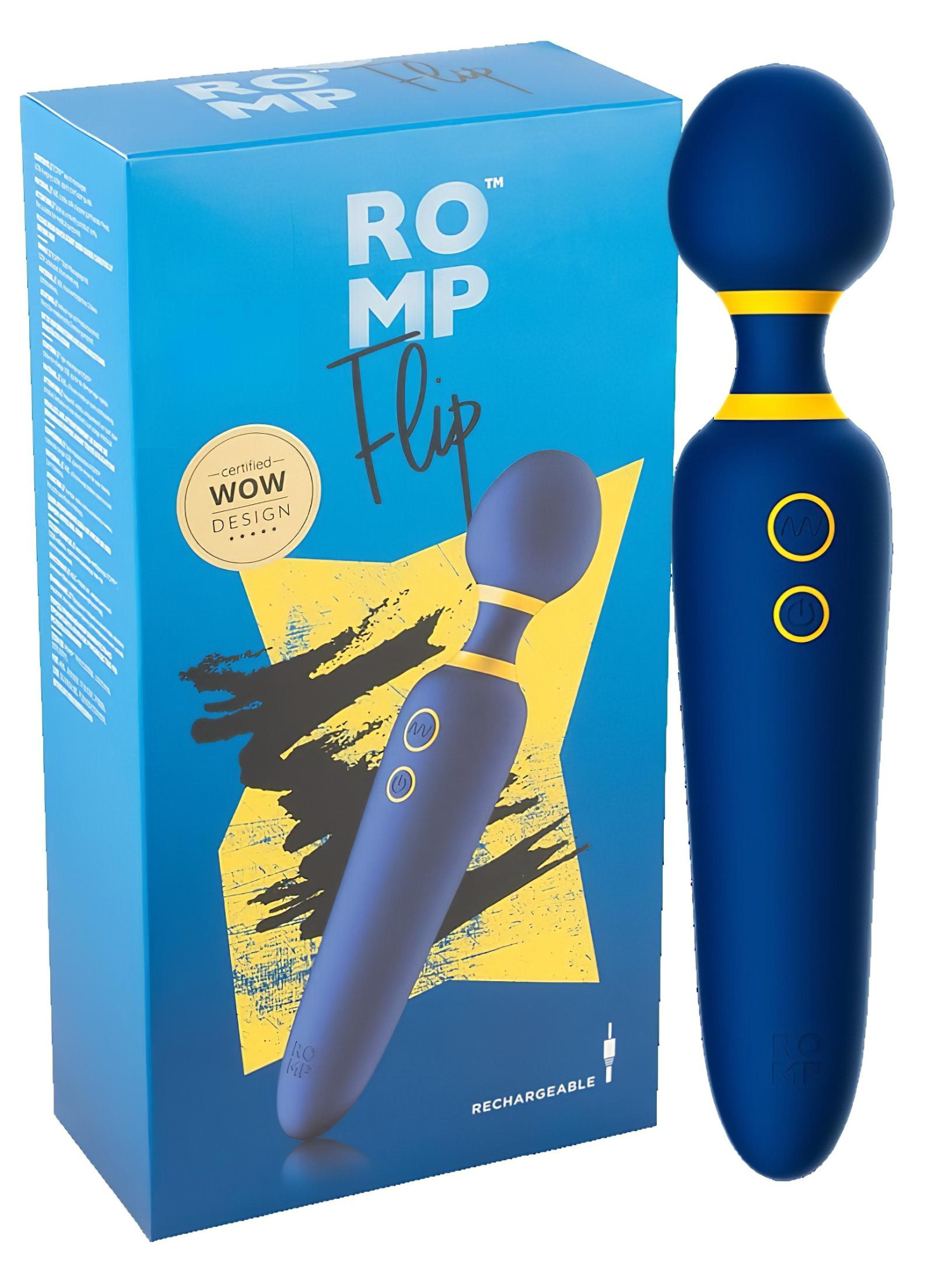 Anmeldelser ROMP Flip Wand - oppladbar, vanntett massasjestav (blå)