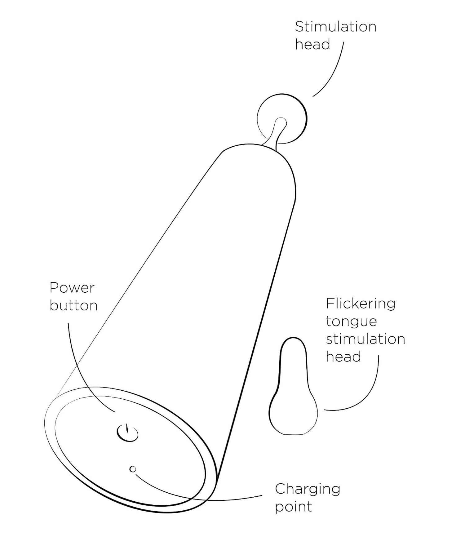 For en mykere, men dypere stimulering, ligg flatt med stimulatoren. Ikke trykk direkte mot toppen, men trykk bare den lille stangen sterkere mot klitoris for en dyptgående opplevelse.