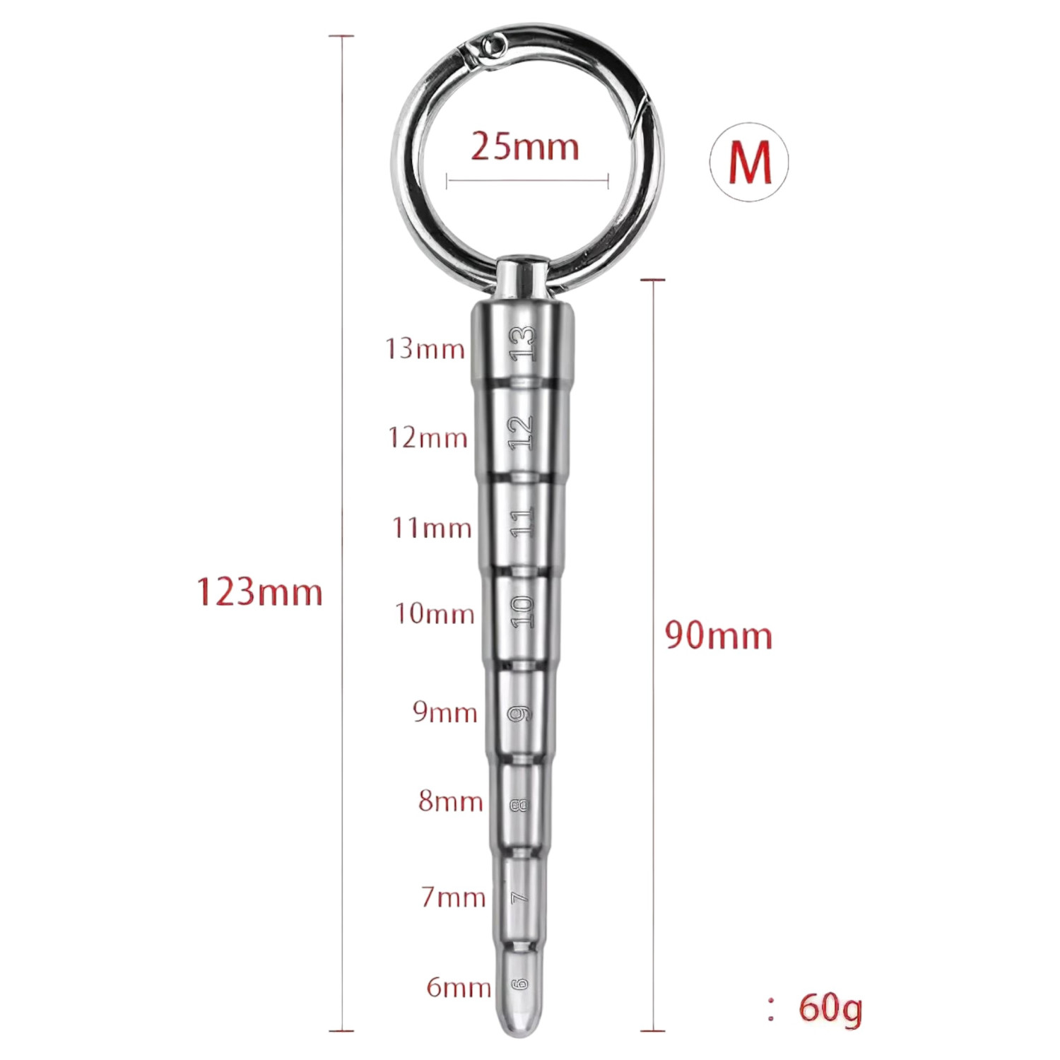 Denne massive rustfrie ståldilatoren har større diameter og gradvis tykkelse for å forsterke den intense, dype stimuleringen. Ideell for de erfarne med urinrørslek som ønsker å utforske sine grenser videre.