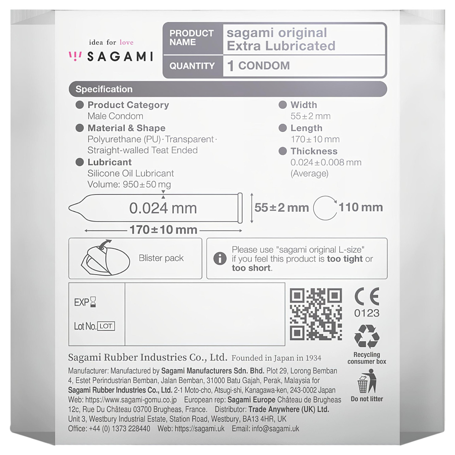 • 1 stk Sagami Original 0.02 - ekstra glidemiddel kondom (55 mm)
