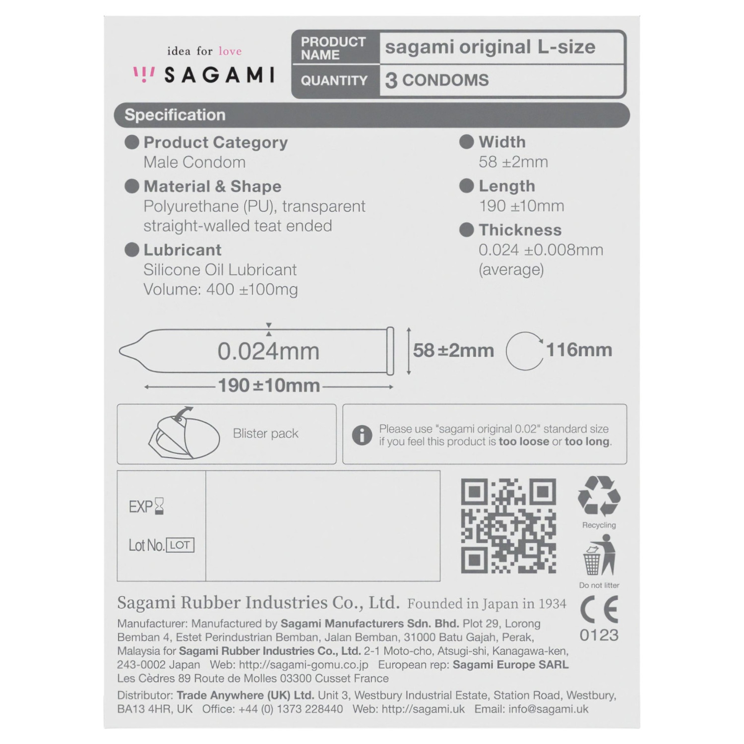 • 3 stk Sagami Original 0.02 L-Size kondomer