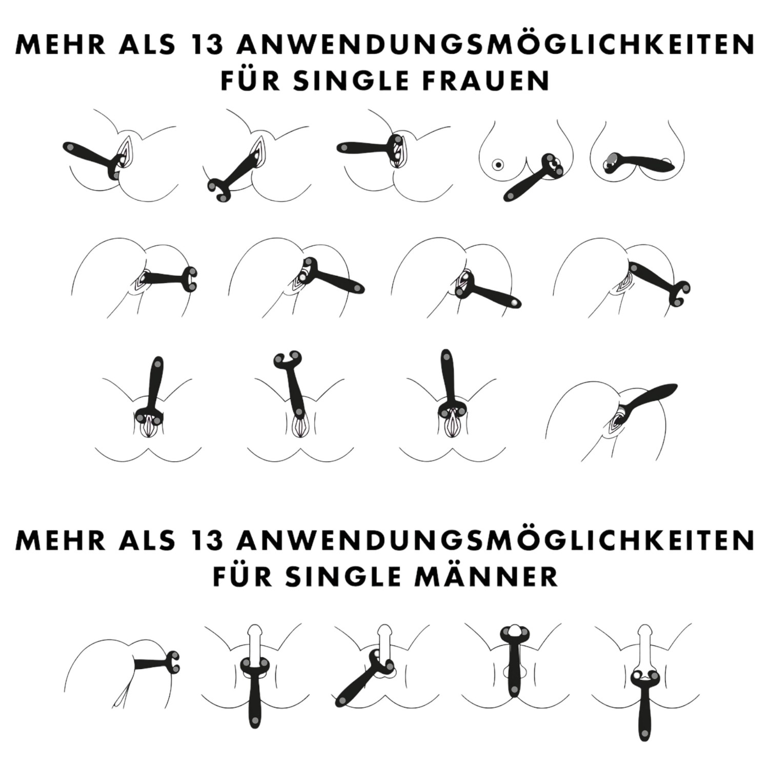 Plasser penis mellom de to fleksible armene og beveg opp og ned med vibrasjon, eller bruk som klitoris-, brystvorte-, vaginal vibrator, penishylse, eller i parakter som klitoris- eller testikkelsimulering. Flere ideer finnes blant illustrasjonene på emballasjen!