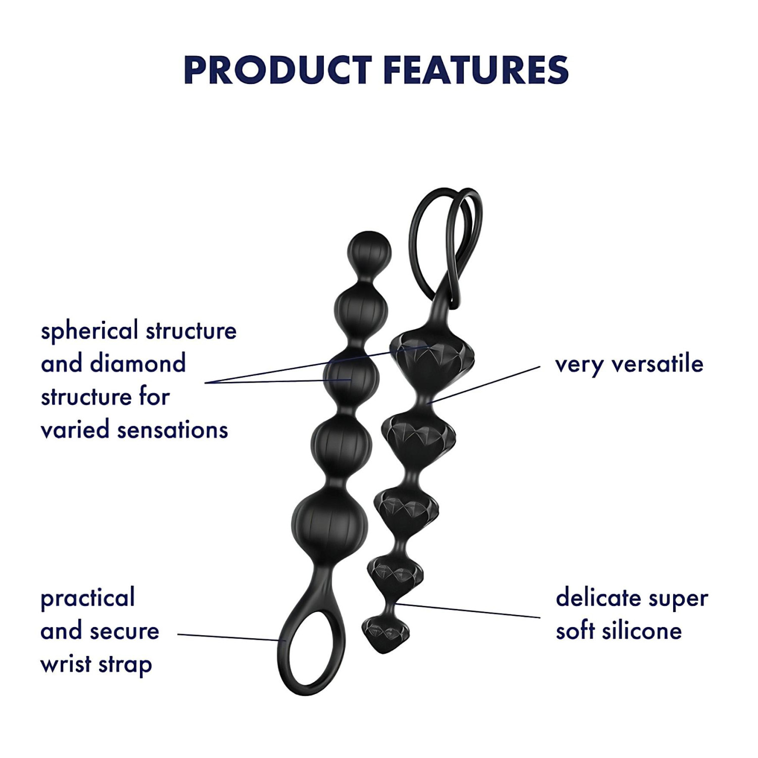 Et sett med analkuler laget av kroppssikker silikon med to unike overflater, gir ulike opplevelser for både menn og kvinner!