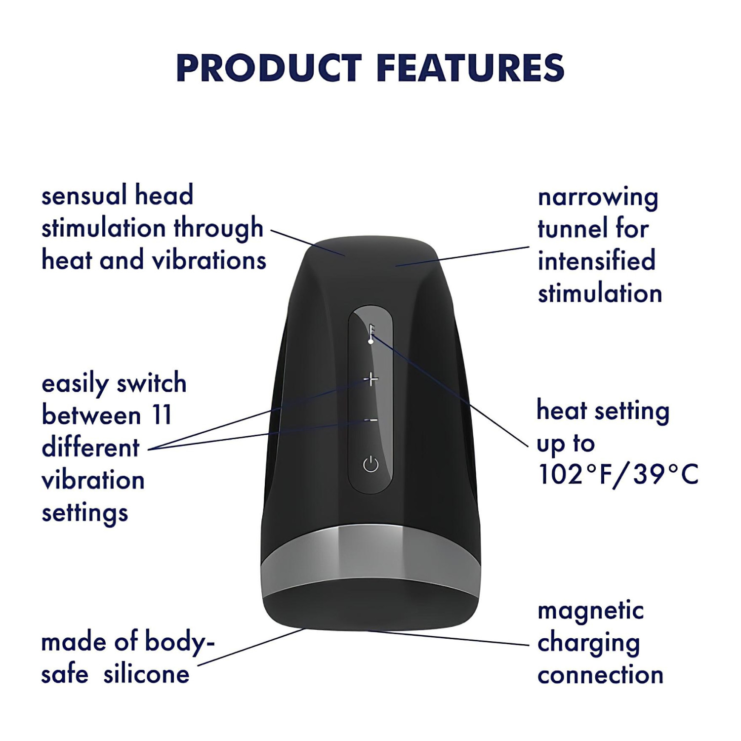 • Styr vibrasjon og varme enkelt med knappene på enheten.