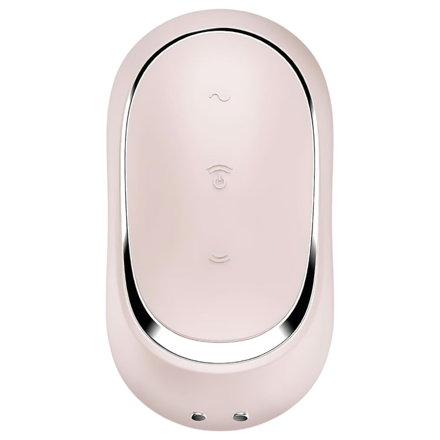 Det er tre knapper på baksiden av produktet. Du kan slå enhetens luftbølgestimulering av og på ved å holde midtknappen inne (ca. 3 sekunder). Du kan også justere stimuleringstyrken med samme knapp og den nedre halvsirkel-knappen.