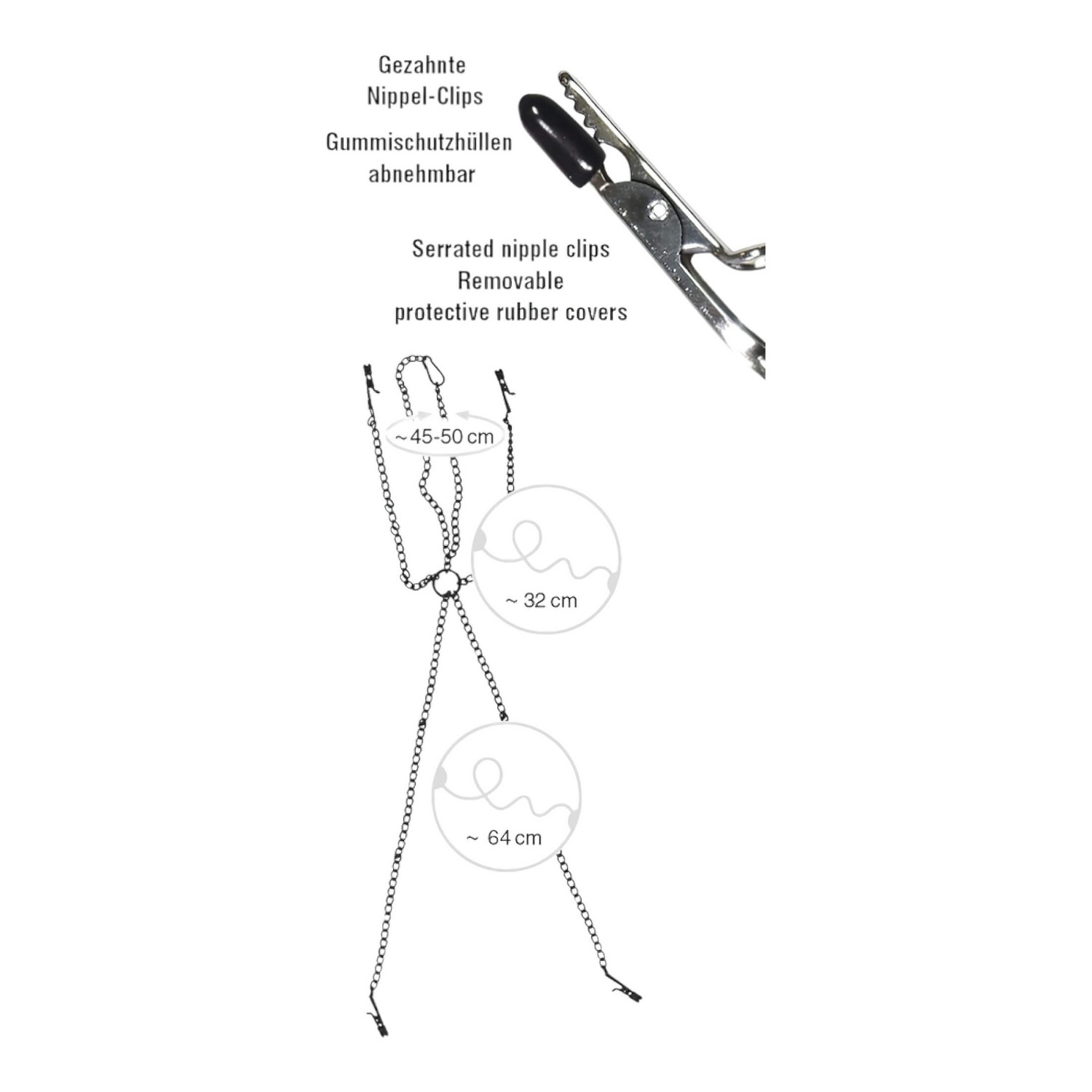 Ringen mellom brystene (med en diameter på 3,5 cm) kobler halskjedet til de to brystkjedene (hver ca. 30 cm lange) med klemmer til brystvortene og de to kjeder til kjønnsleppene (hver 66 cm) med klemmer til underlivet. Halskjedets størrelse kan justeres med en karabinkrok.