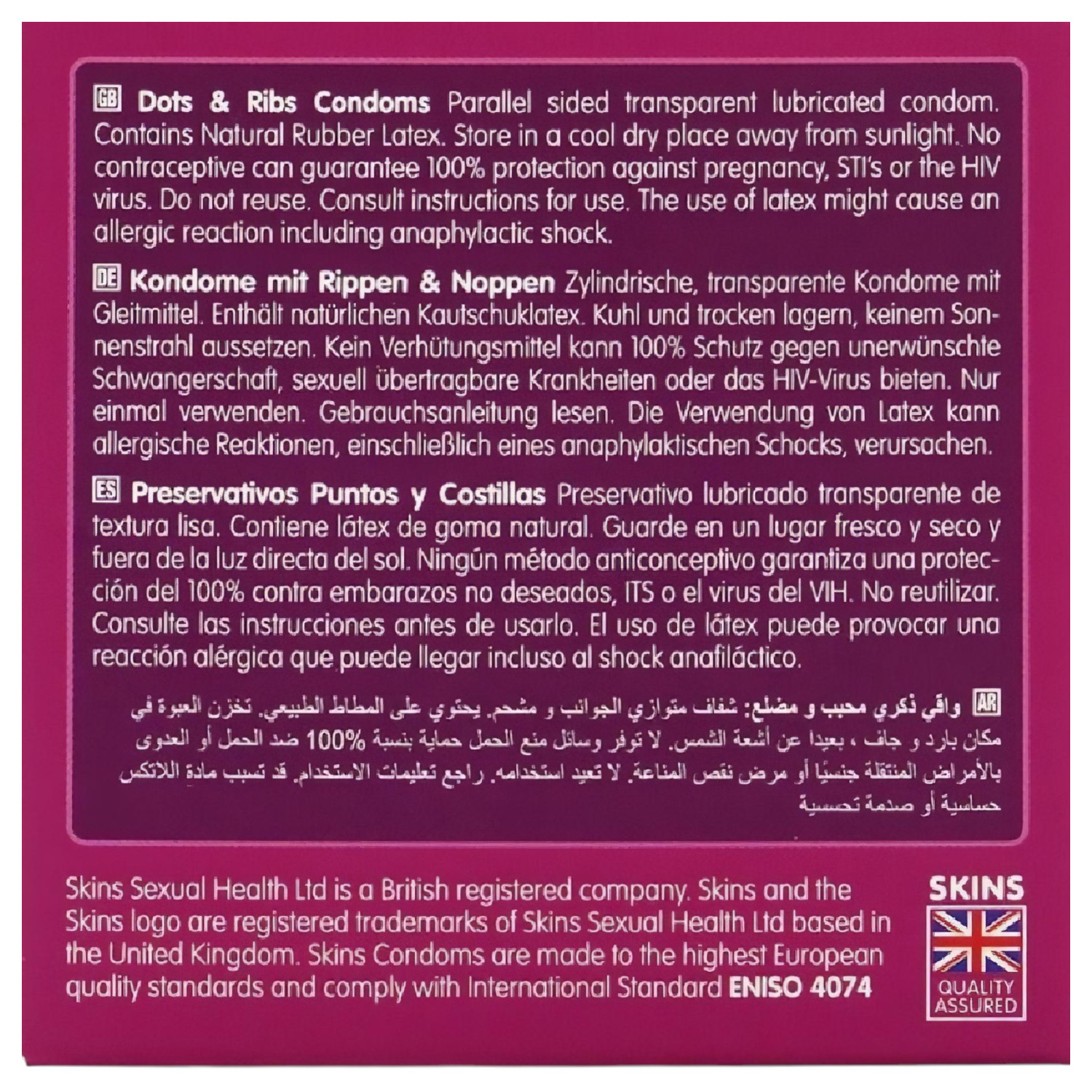 Skins - riflet og prikket kondomer (4 stk)