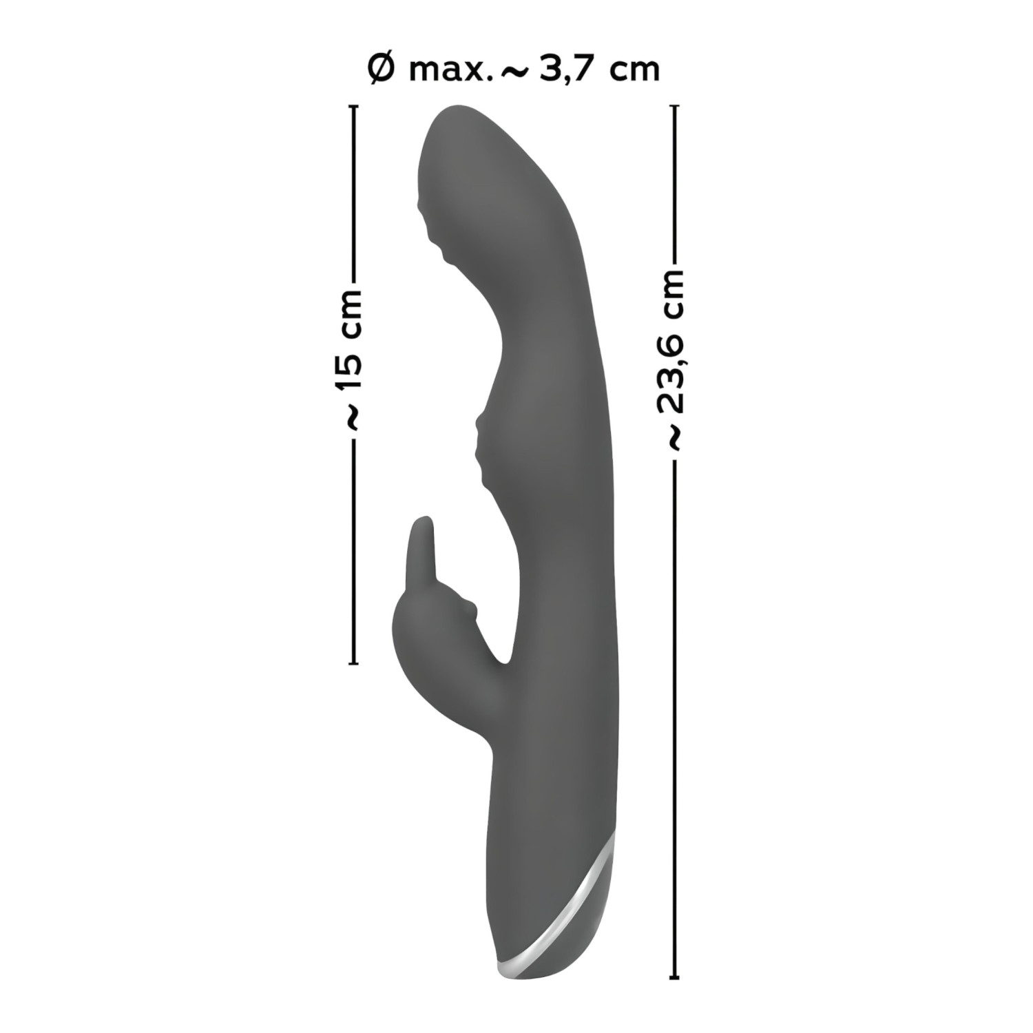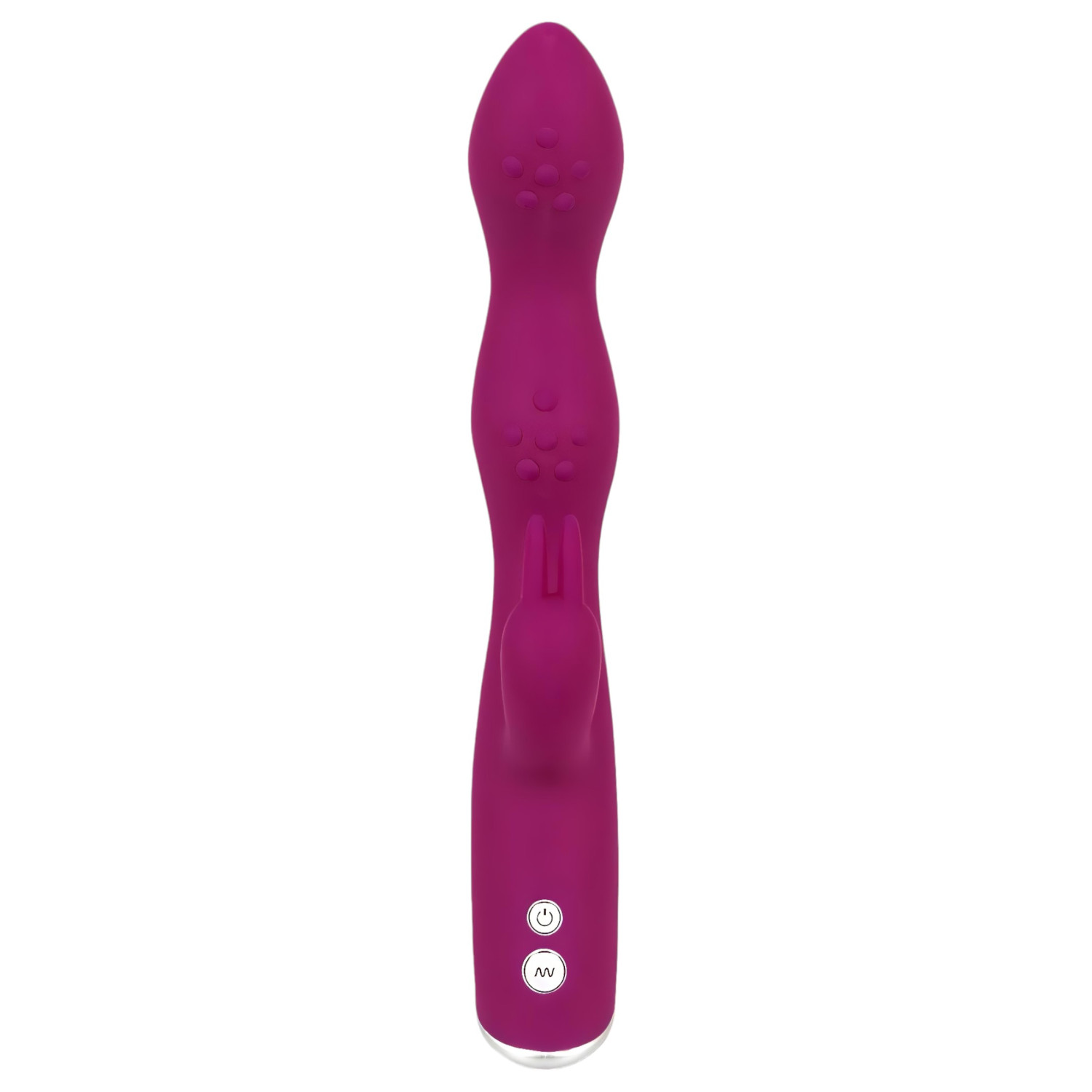 Svært bøybar vibrator laget av hudvennlig silikon, ideell for personer med sensitiv hud.Stimulerer samtidig G-punktet, A-punktet og klitoris for økt fuktighet!