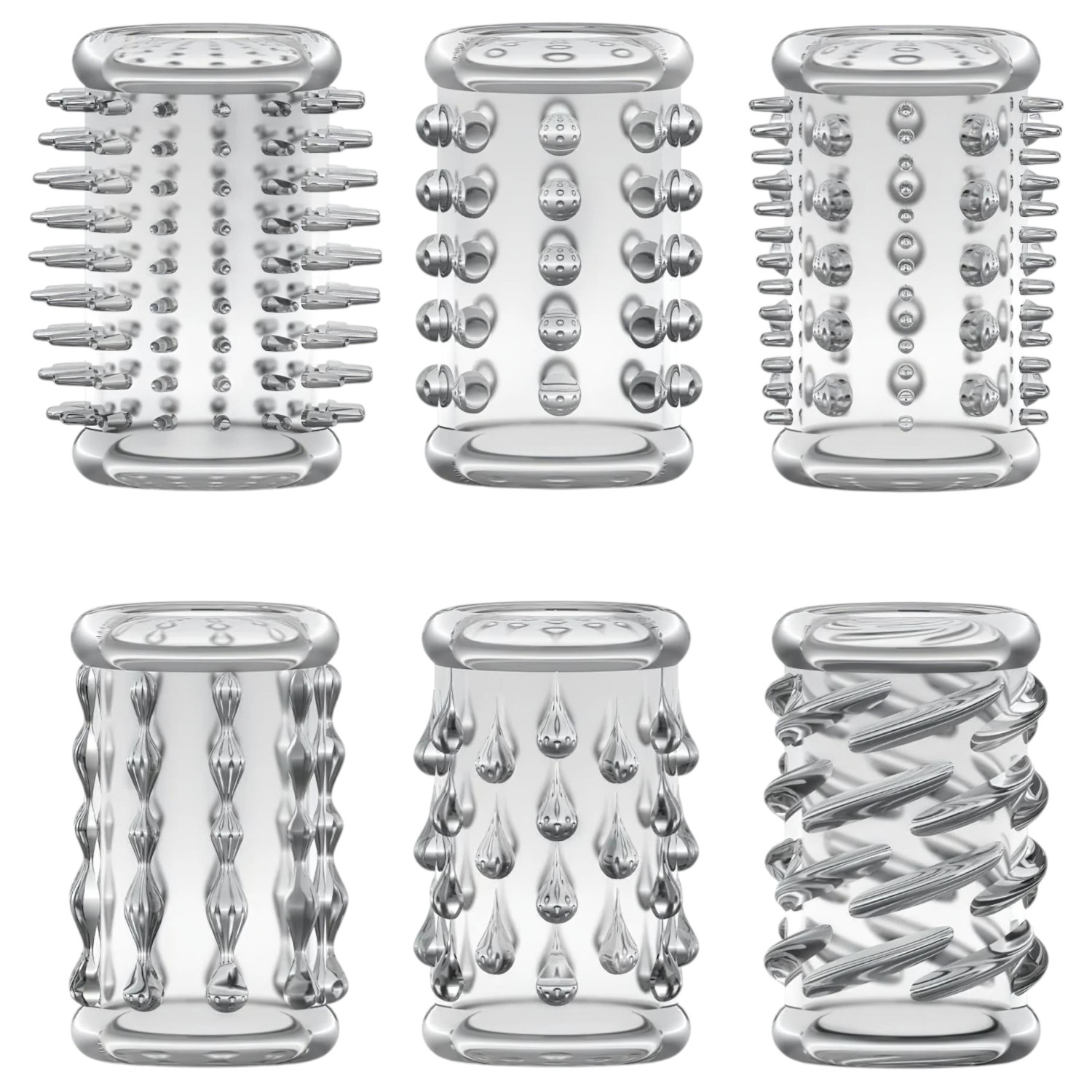 • 6 penisringer med forskjellig overflate (gjennomsiktig farge)