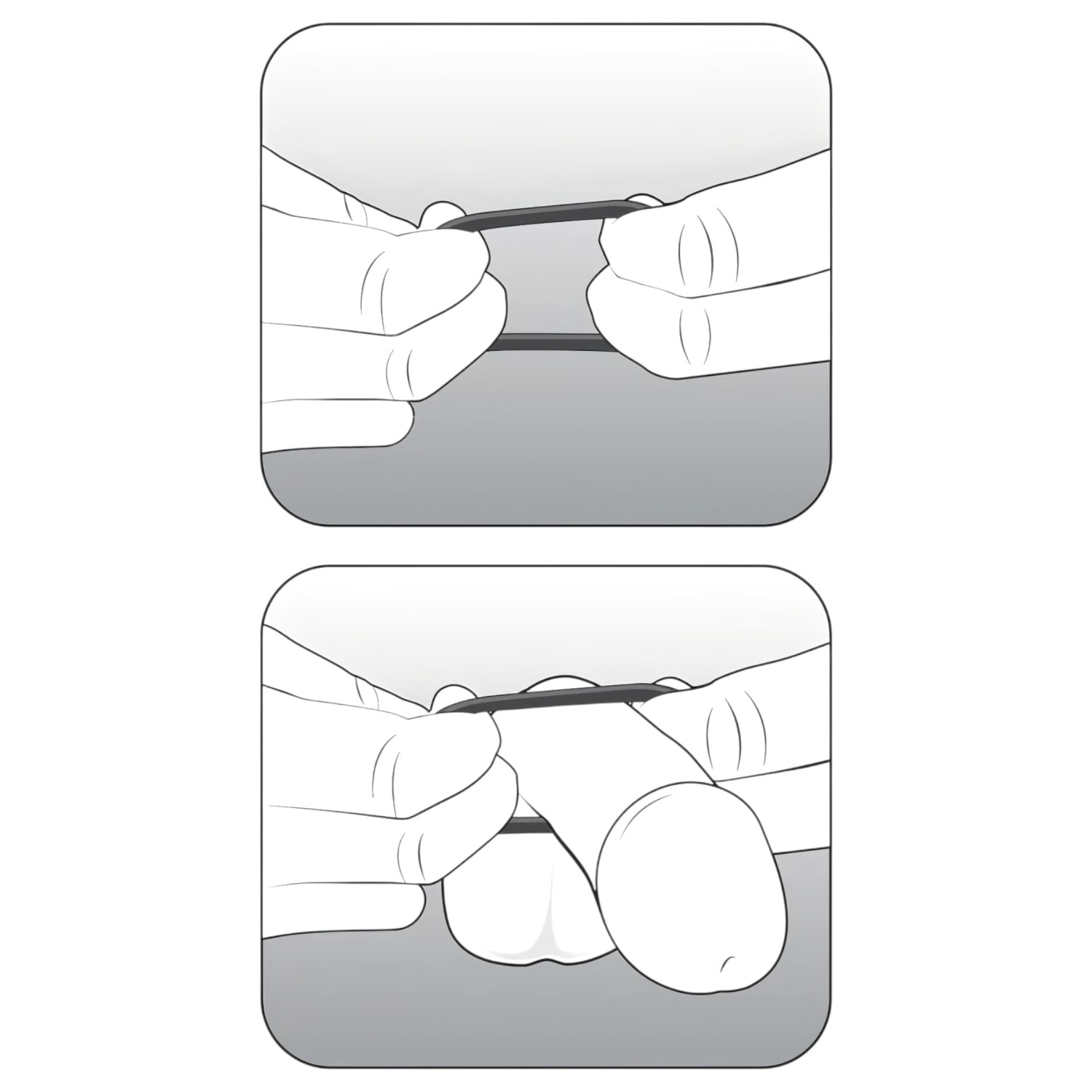 • Strekk ringen og plasser den ved roten av penis eller rundt pungen