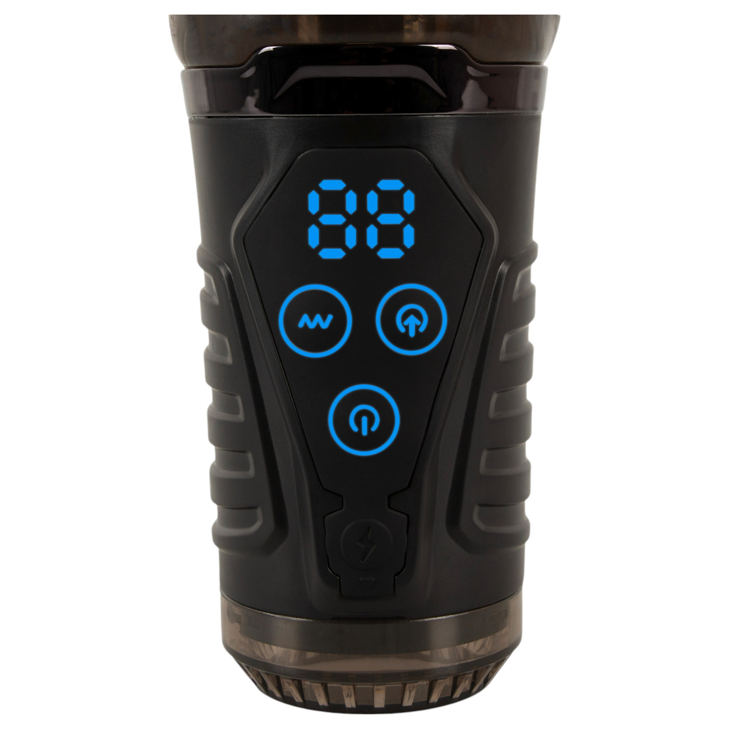 Slå på enheten, velg ønsket vibrasjons- og sugmodus, og før inn penis i den myke, munnformede åpningen. Kombiner funksjonene som du ønsker, og nyt den spesielle oralsexfølelsen. Juster trykket med LED-displaypanelet eller Air Release-knappen.