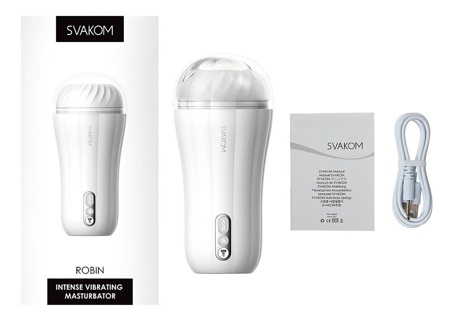 Opplev intens nytelse med Svakom Robin oppladbar masturbator, som leverer perfekt glede med smart sugeeffekt og varierte vibrasjonsmoduser!