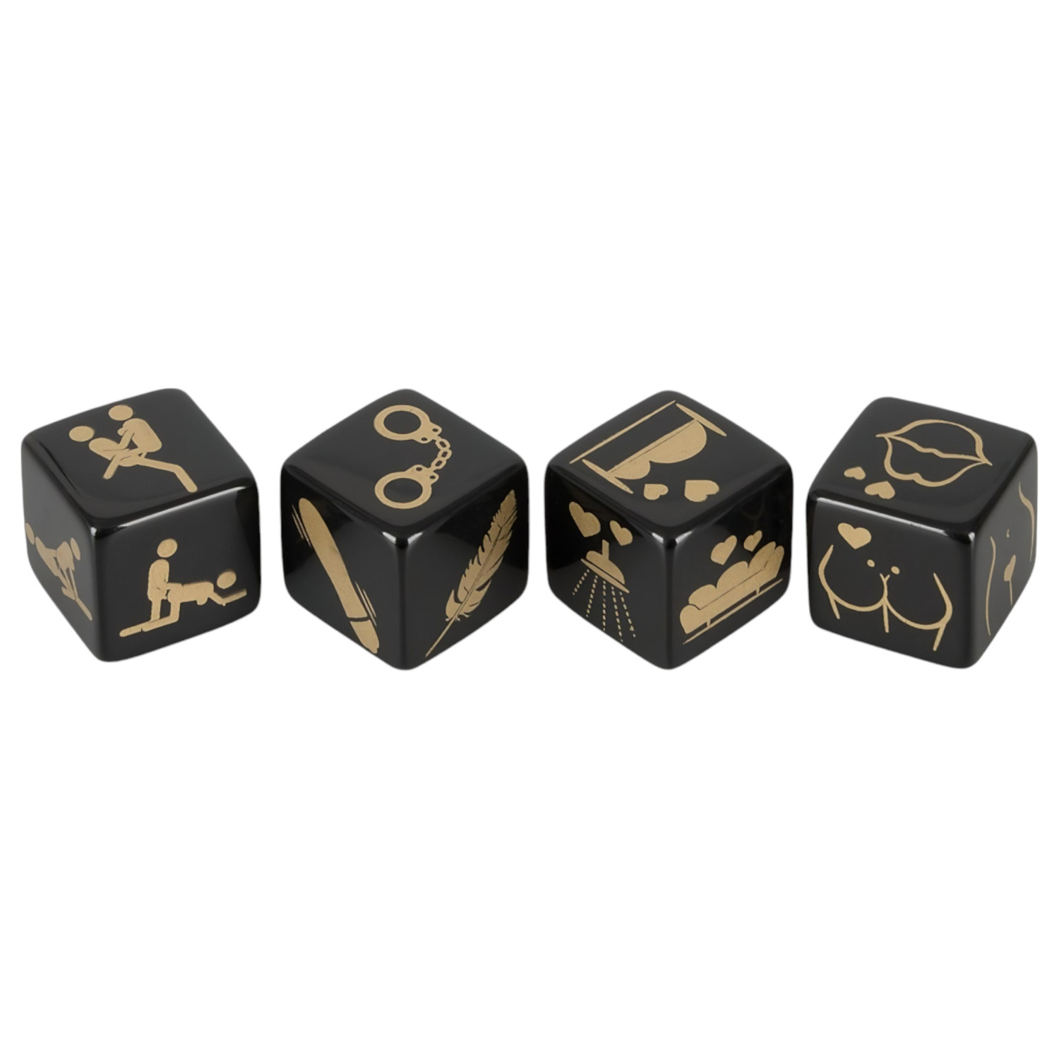 Skap en romantisk atmosfære – eller la spillet lede! Kast alle terningene samtidig, og gjennomfør oppgavene som kommer opp. Terningkombinasjonene kan være en posisjon, et sted, en kroppsdel og et tilbehør – så hver opplevelse blir unik.