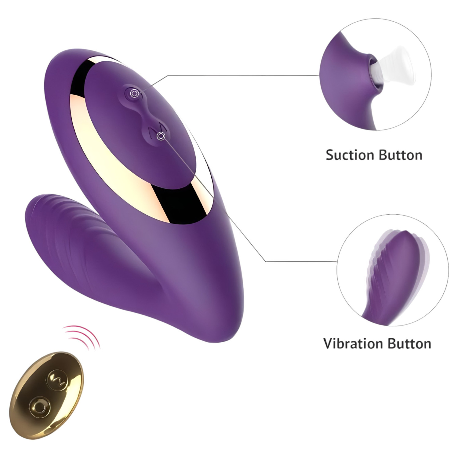 Etter påføring av glidemiddel, sett inn i vagina slik at klitorisdelen peker oppover. Juster sugekoppen på klitoris, og velg deretter ønsket vibrasjon eller sugeintensitet. Funksjonene kan brukes kombinert ved hjelp av de to separate motorene.