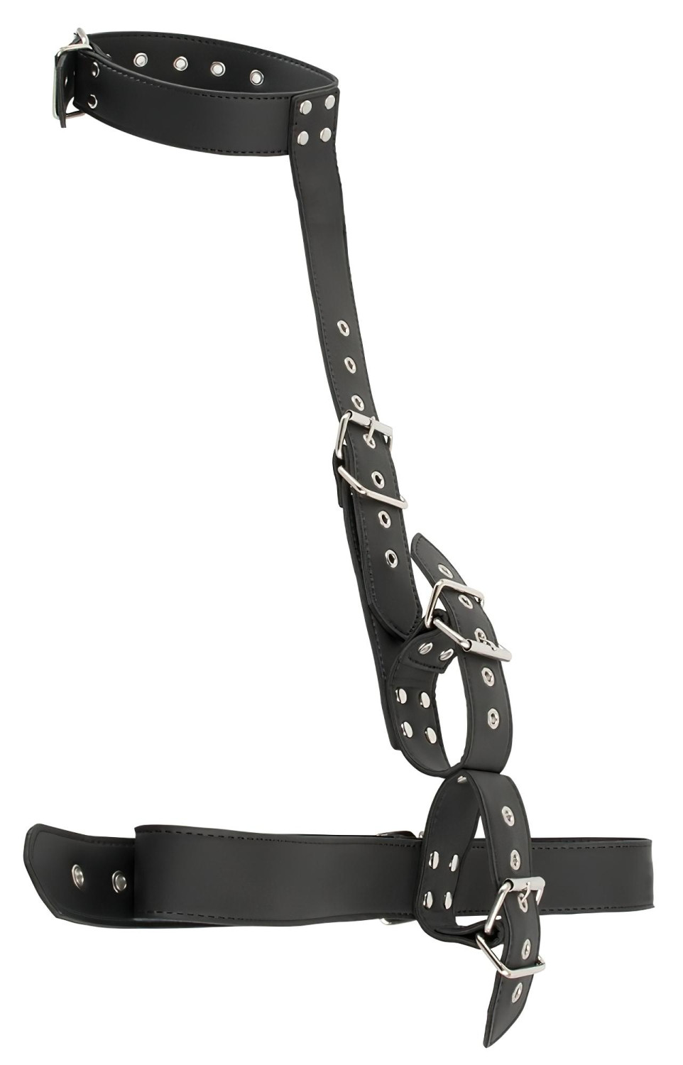 • Start med å feste midjebåndet avhengig av om du vil feste hendene foran eller bak. Deretter justerer du den ideelle lengden for nakkestroppen, og til slutt fester du håndleddene.