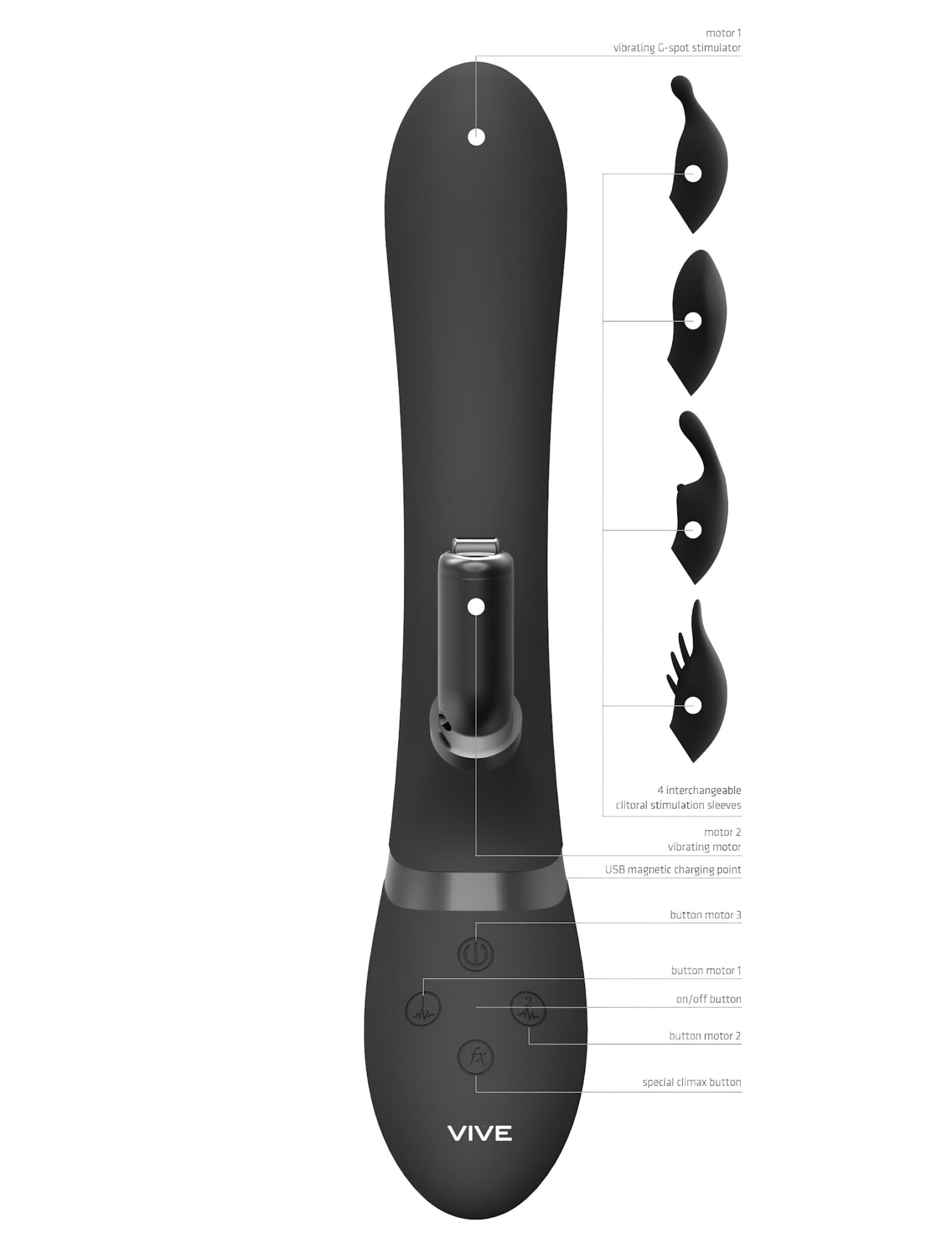 Vive Chou - 4-i-1 klitorisstimulator med arm (svart)