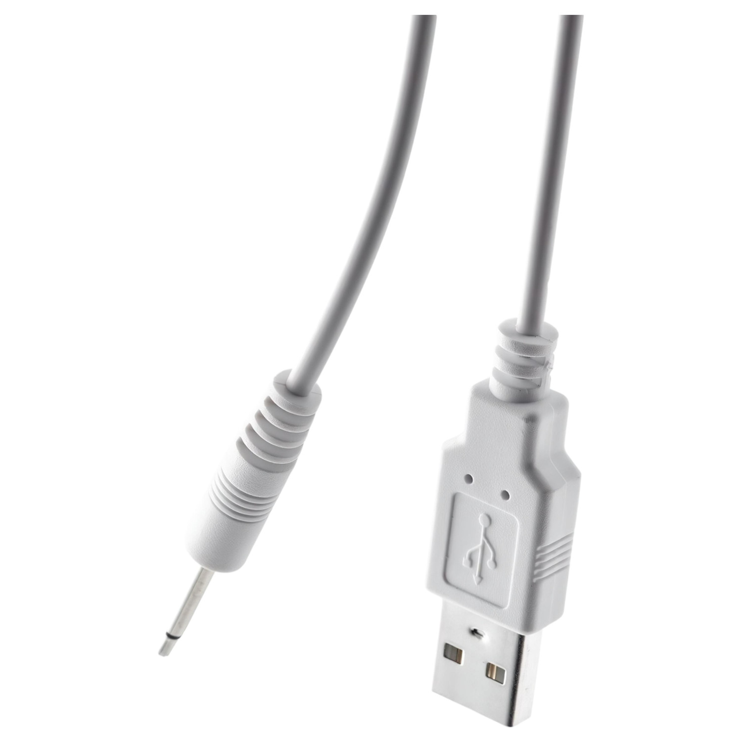 Ladeporten er funnet over kontrollknappen, som du må stikke forsiktig gjennom for å lade enheten.