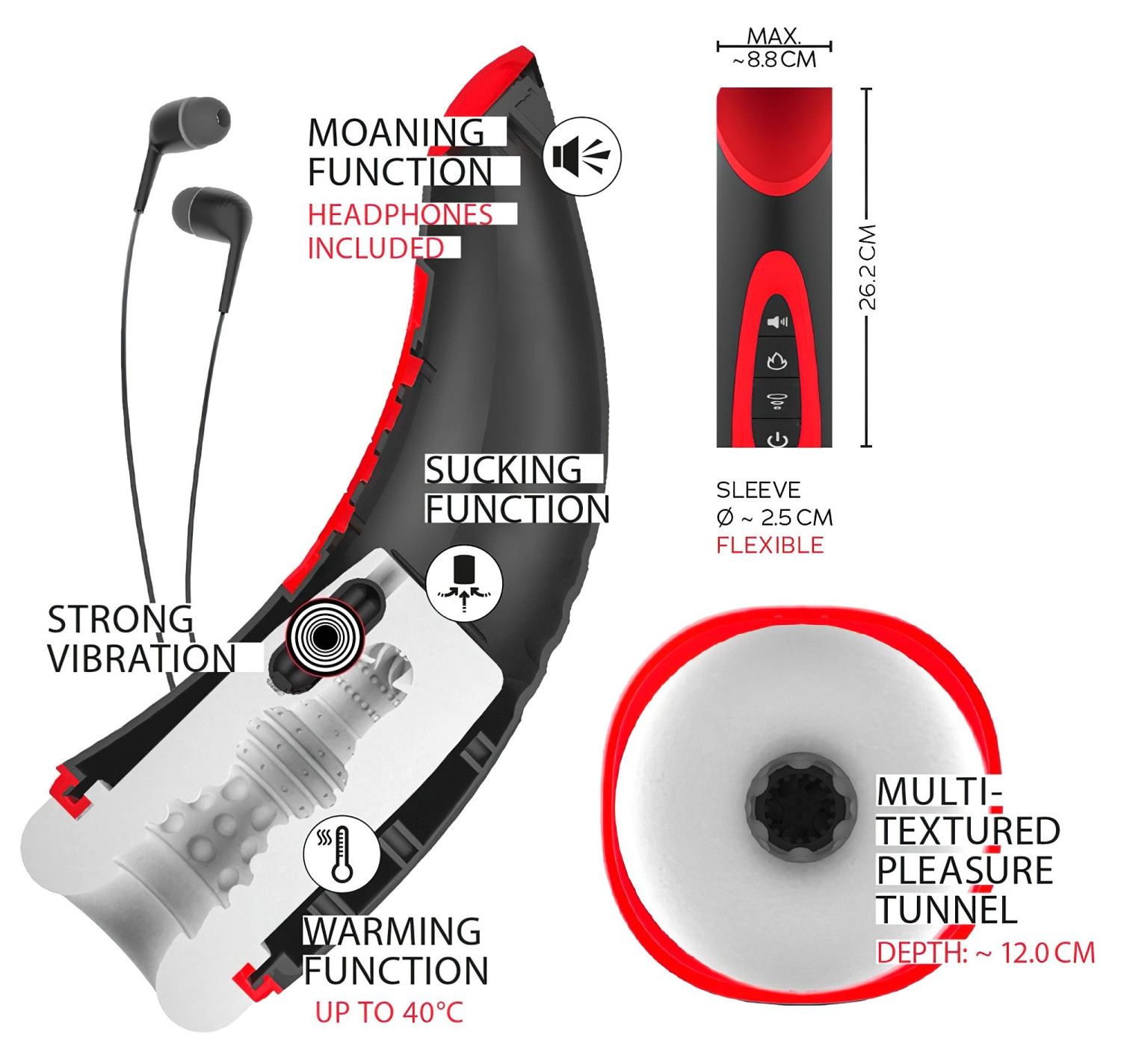 Før du setter i gang, smør inn penis og den myke inngangen med glidemiddel, så kan du gli inn med hard penis. Deretter aktiver funksjonene og nyt den varme vibrasjonen og sugingen.