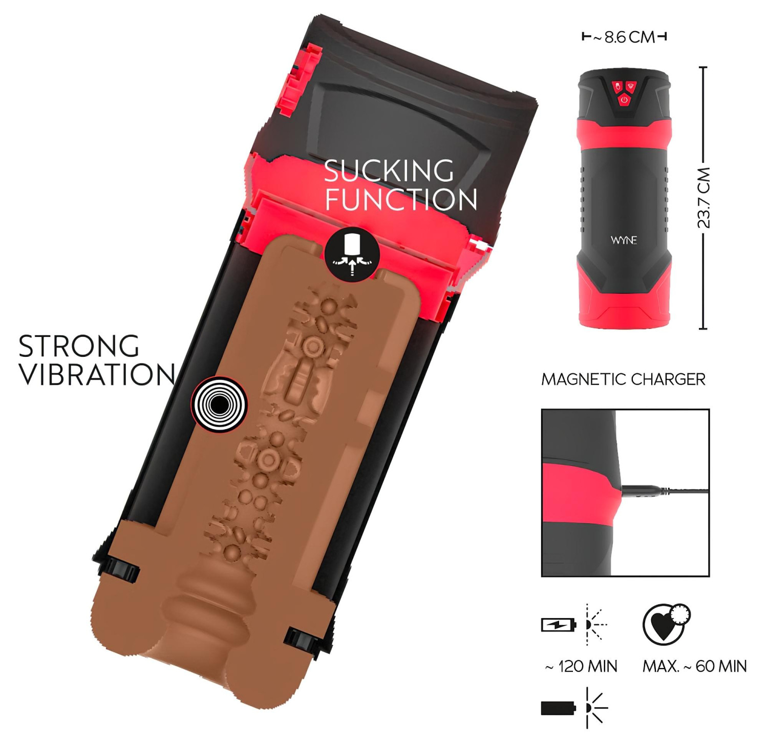 WYNE 04 - Oppladbar, vibrerende sugemasturbator (brun)
