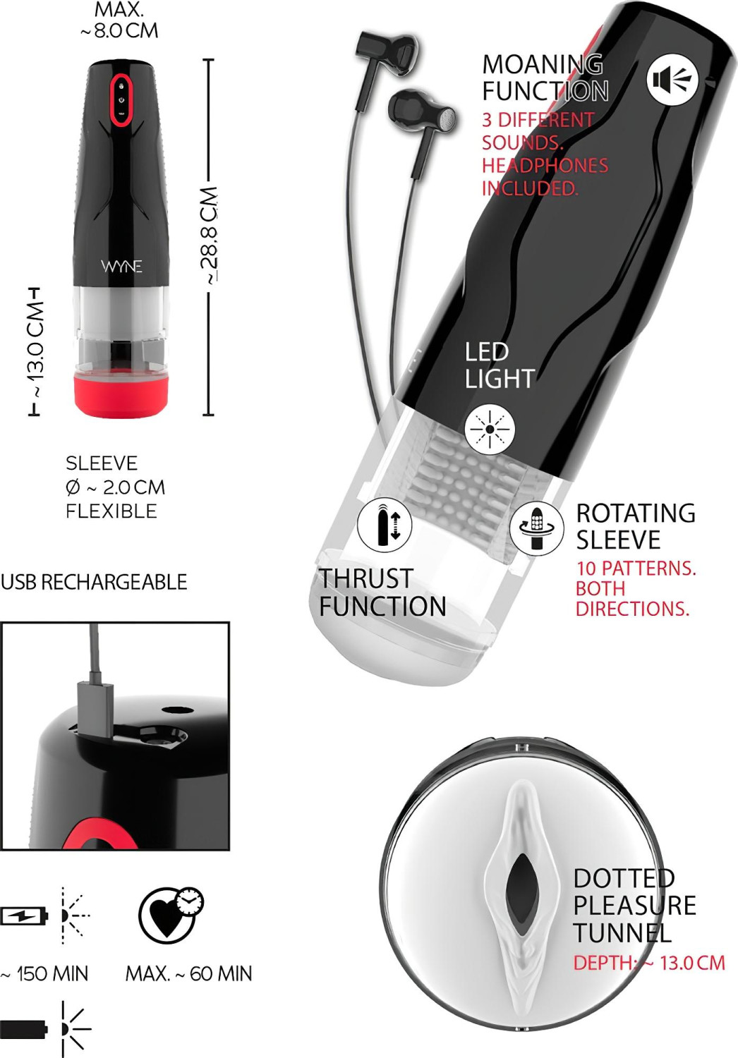 Se presentasjonsvideoen av WYNE 05 - ladbar, roterende masturbator (svart-hvit)!