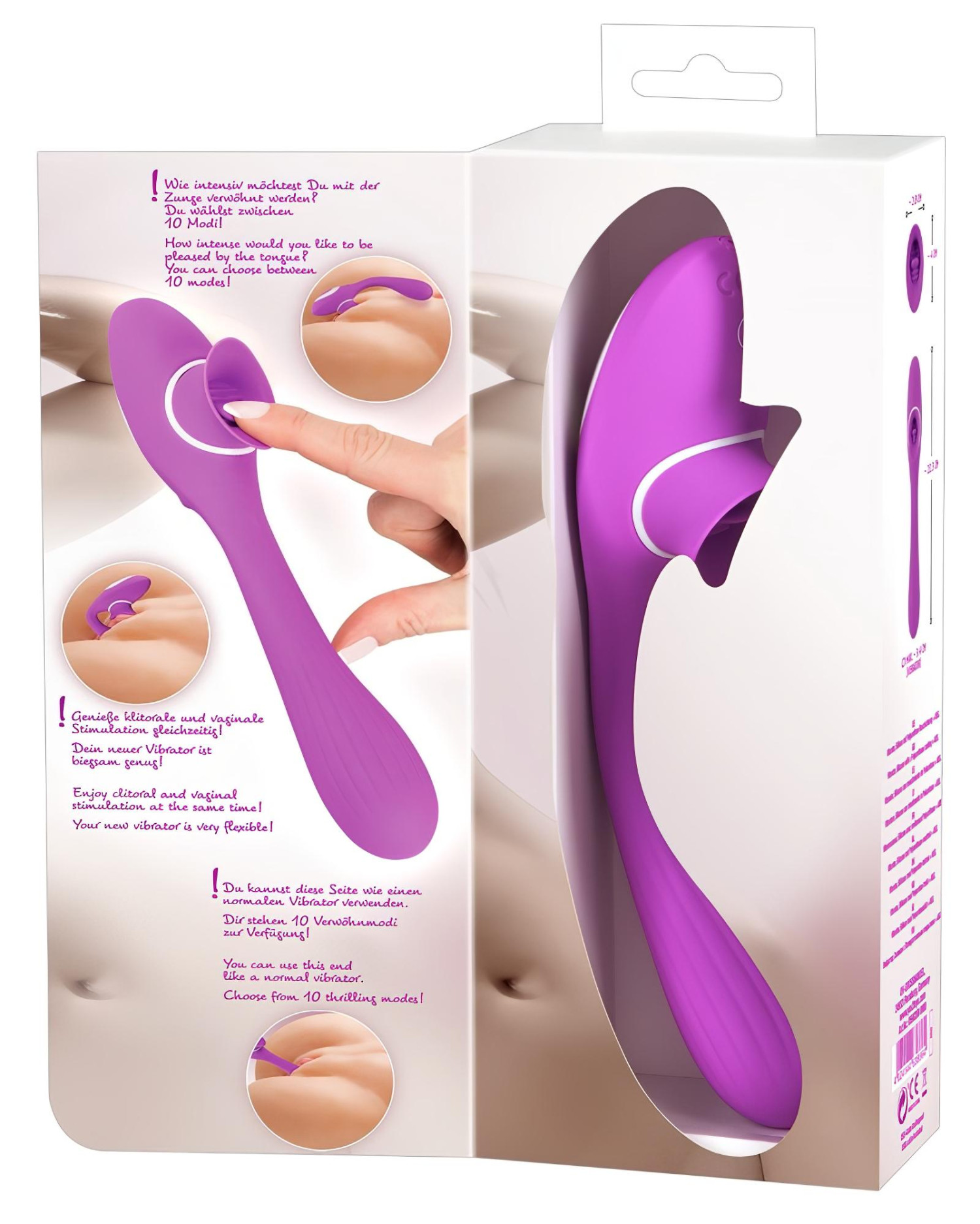 • 10 forskjellige bevegelsesmoduser - varierte tungeslag på klitoris eller vaginalinngangen