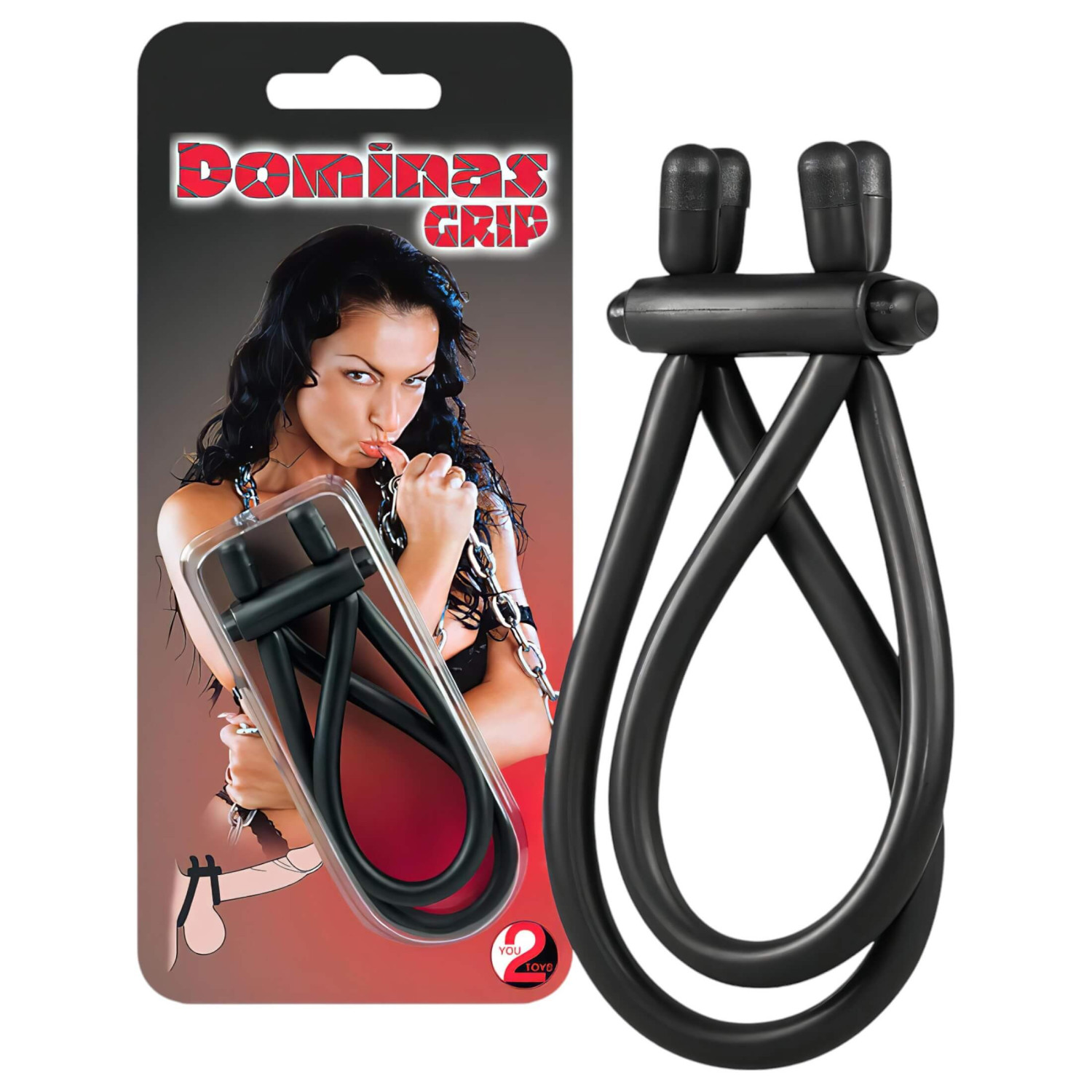 Sort, solid dobbeltring laget av latex, utmerket for å opprettholde ereksjonen. Ringens diameter kan justeres ved å trykke på de to små knappene, slik at den passer perfekt for enhver størrelse.