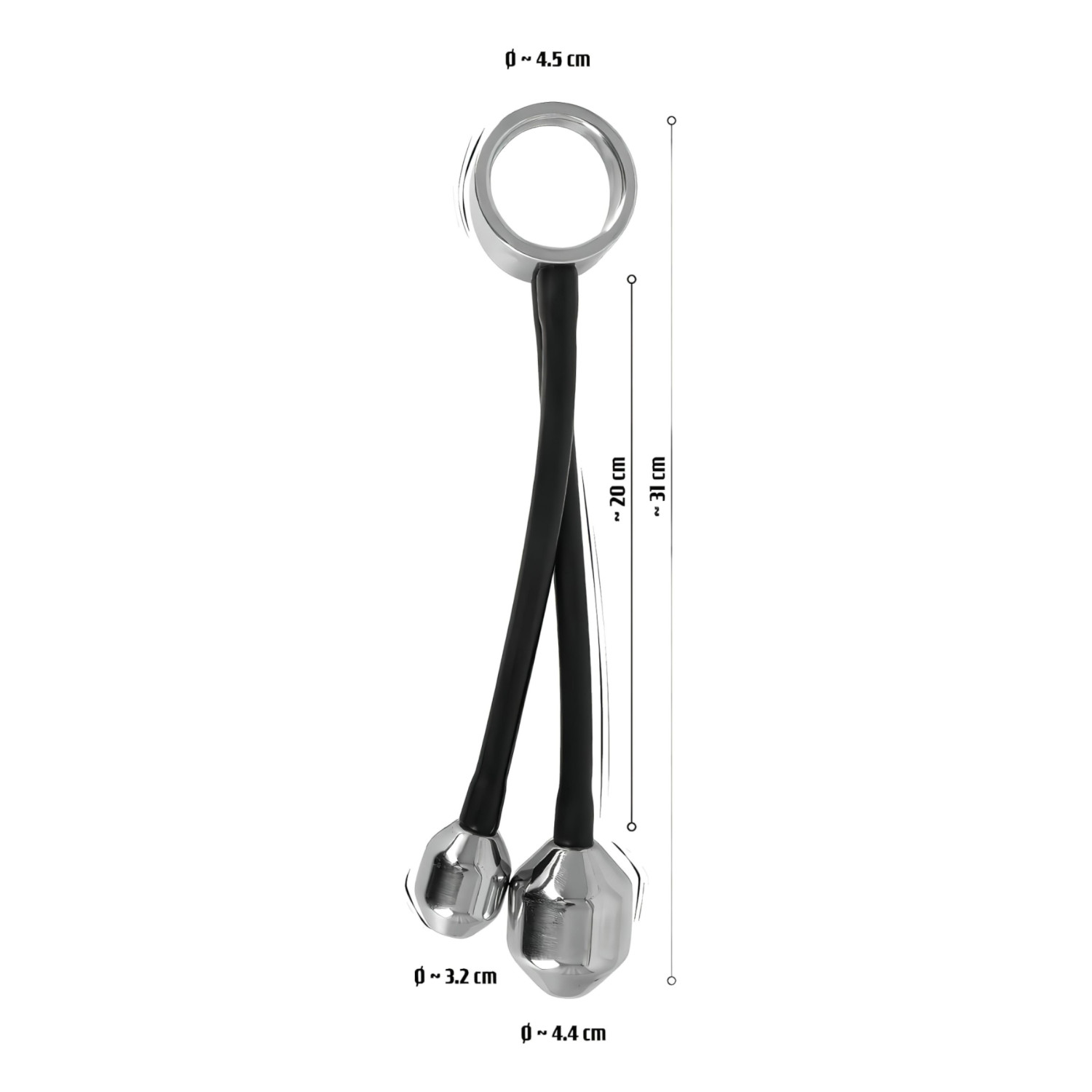 Med to hengende vekter, som stimulerer prostata når de er analt innsatt, vil gi en intens trekkopplevelse når de henger ned.
