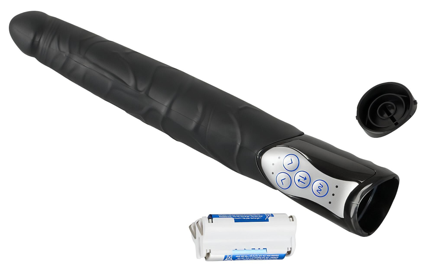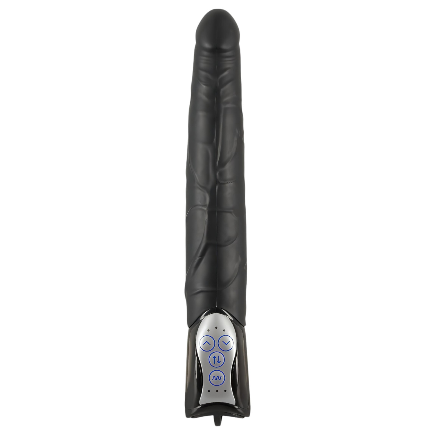 3-trinns inn-og-ut bevegelse, støtfunksjon og vibrasjon, fleksibelt materiale dildo med imponerende lengde!