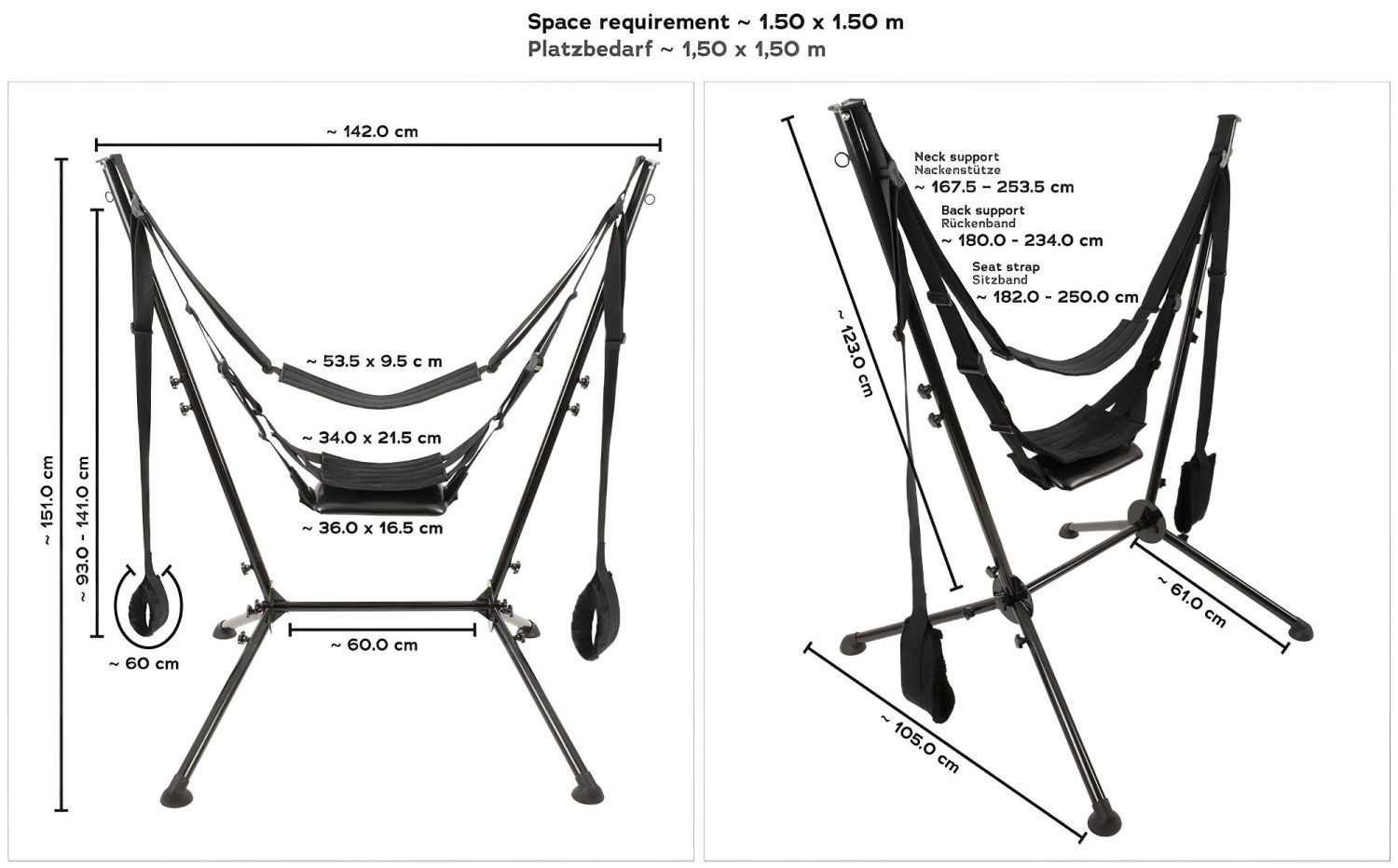 • Størrelse på stativ: lengde: 106 cm; høyde: 151 cm; bredde: 105 cm