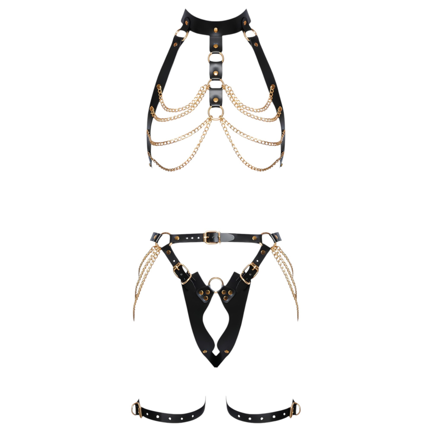 ZADO - 2-delt lærharness-sett (svart-gull)