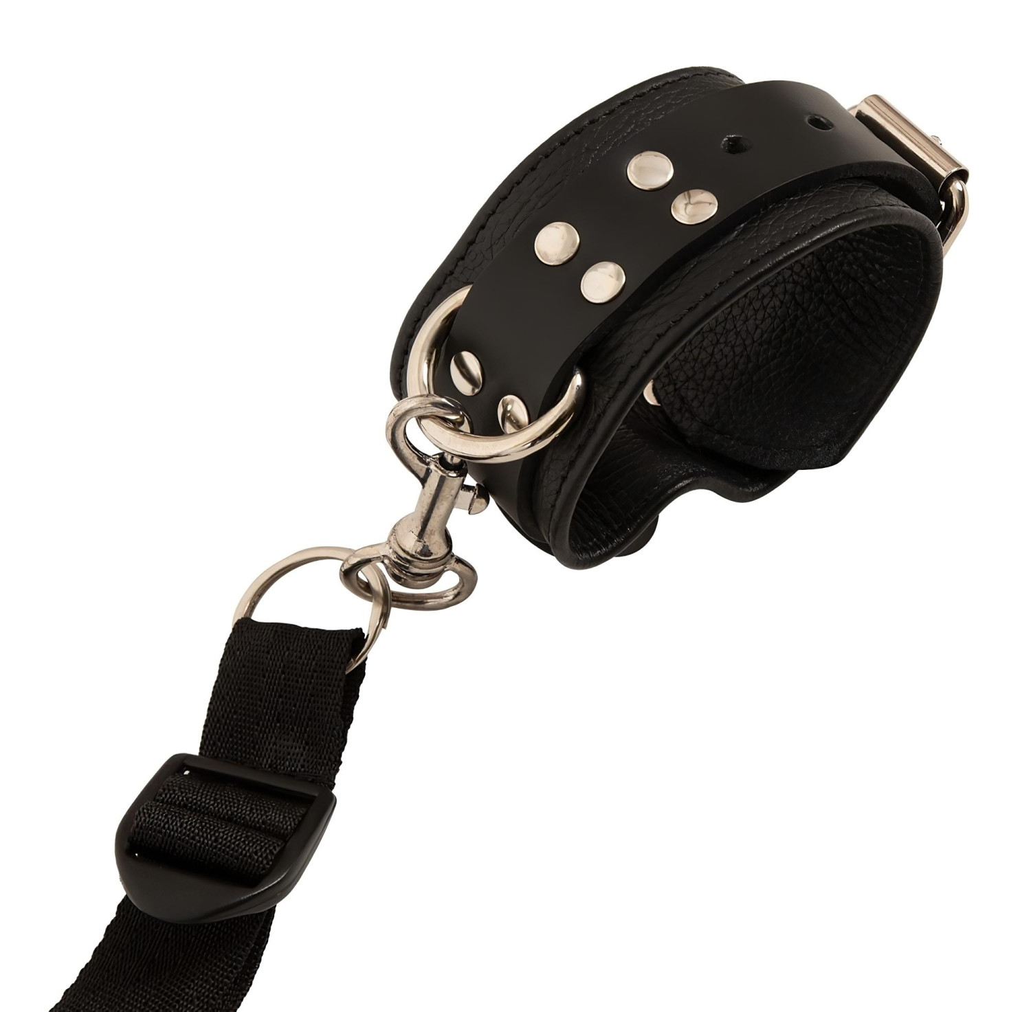 • Før den lange snoren under madrassen/sengeramma parallelt, og trekk ut de 4 stroppene slik at de er over madrassen, da disse skal festes til manettene med karabinkroker. Fest hånd- og ankelstroppene, og la leken begynne!
