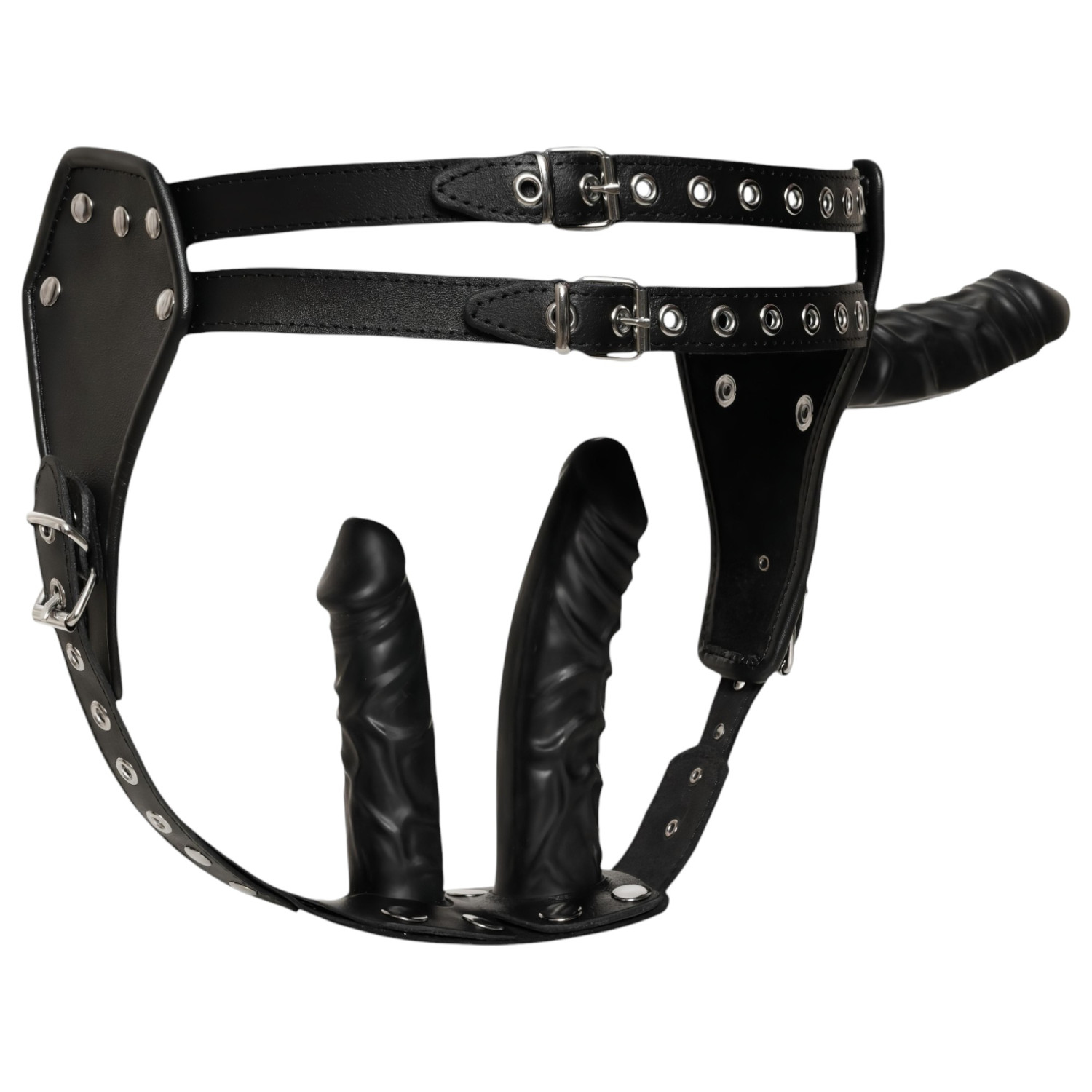 • Eksteriør av ekte skinn og 100% latexdildoer for maksimal komfort og nytelse.